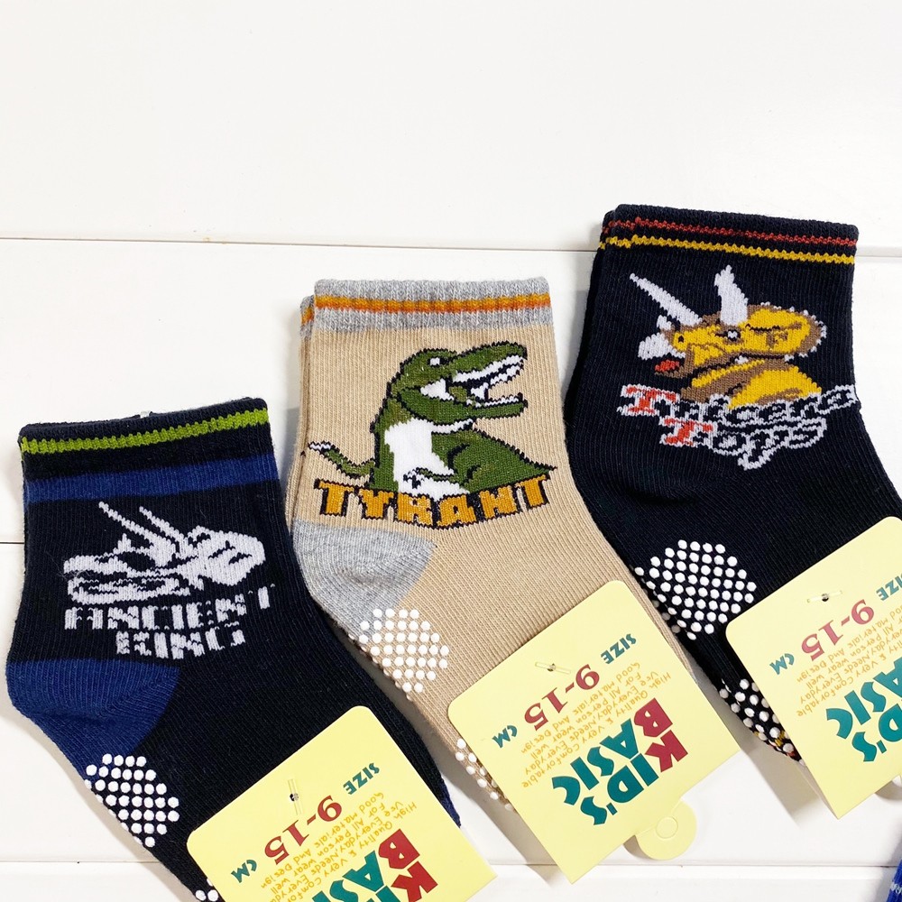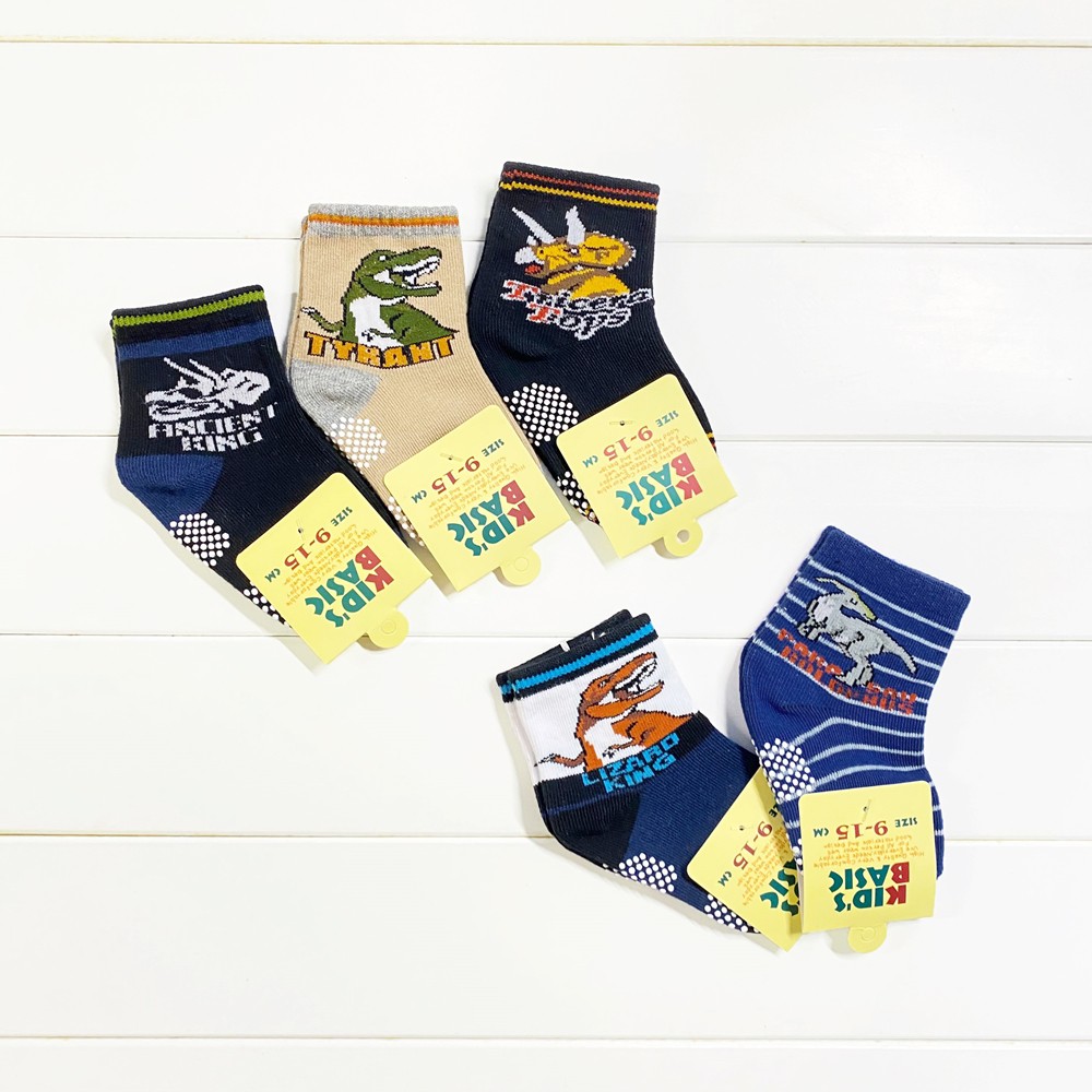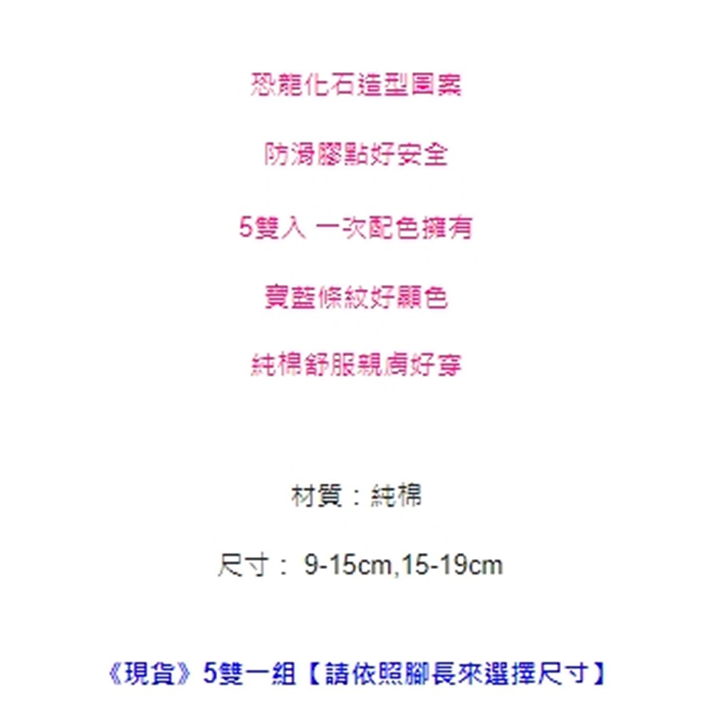 (5雙一組) 恐龍條紋化石 防滑膠點中筒襪 中短襪 襪子 童襪 男童 中童 小童 兒童 【p0061228460641】
