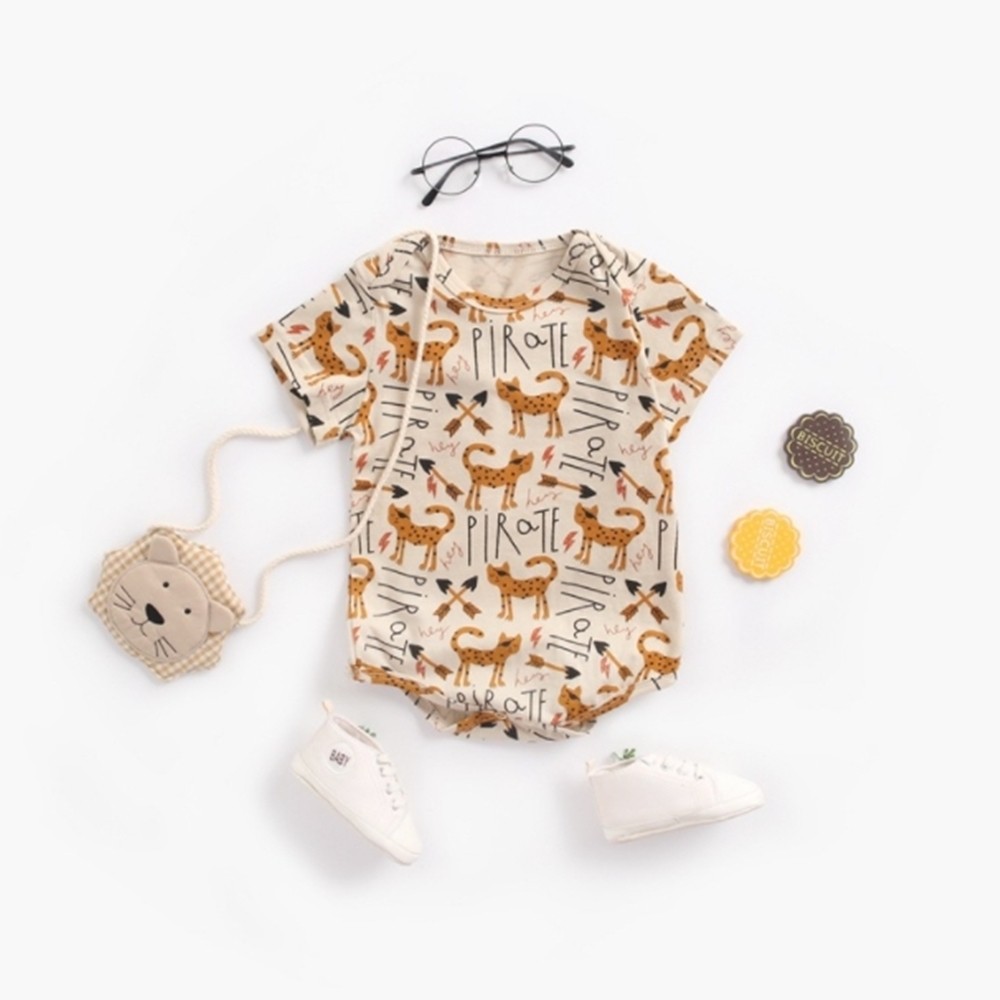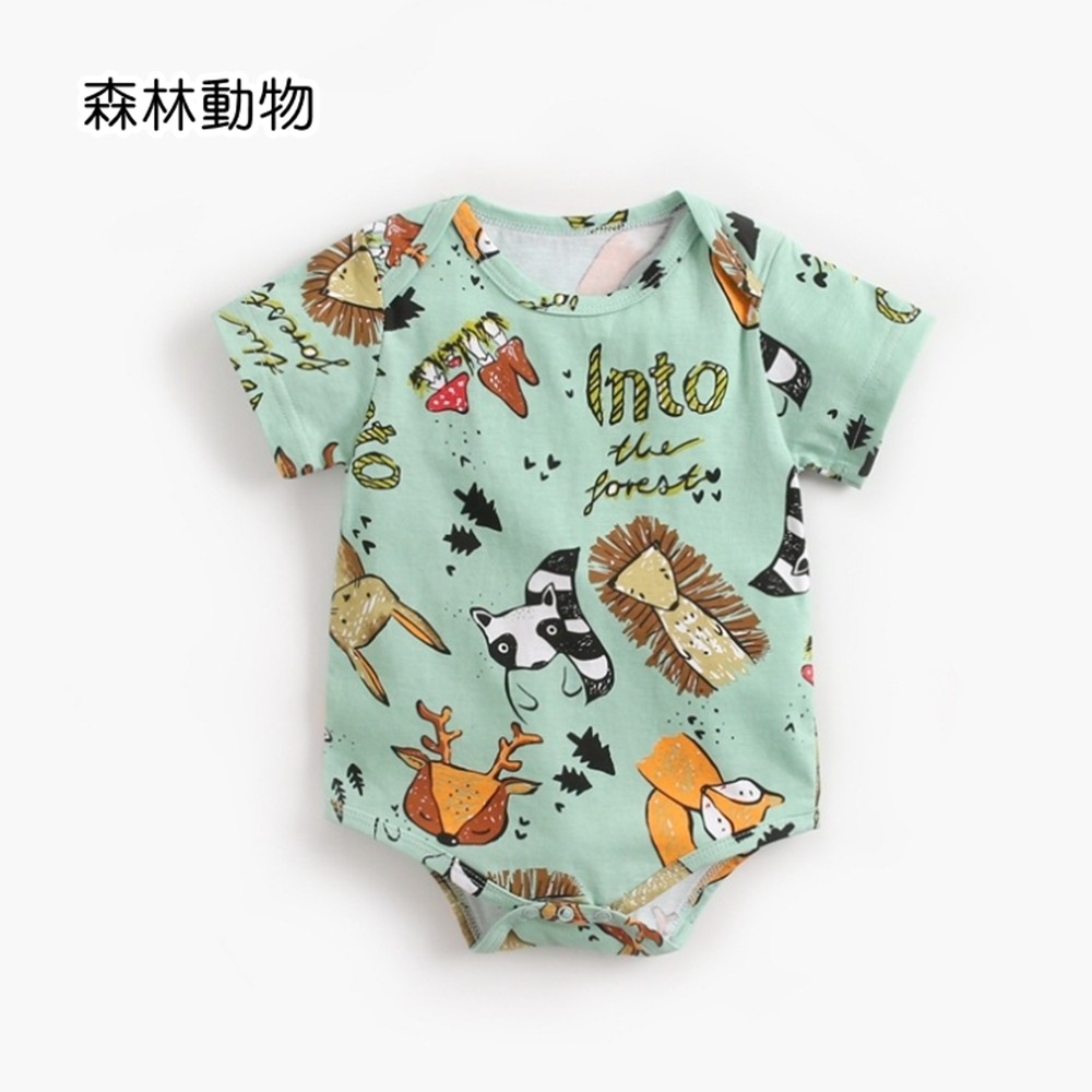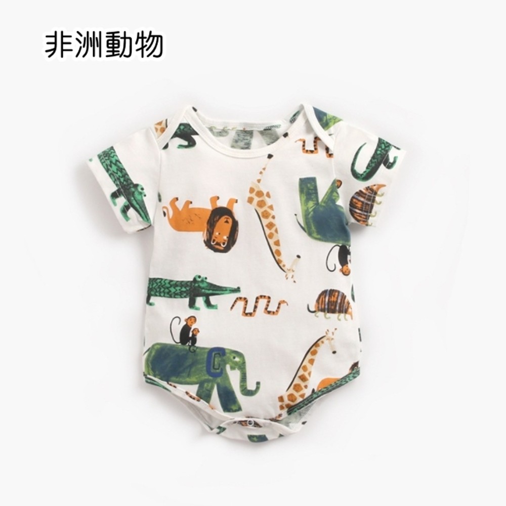 動物手繪塗鴉短袖信封領包屁衣 連身衣 現貨 童裝 嬰兒 新生兒 寶寶 男童 兒童 橘魔法【p0061224812821】