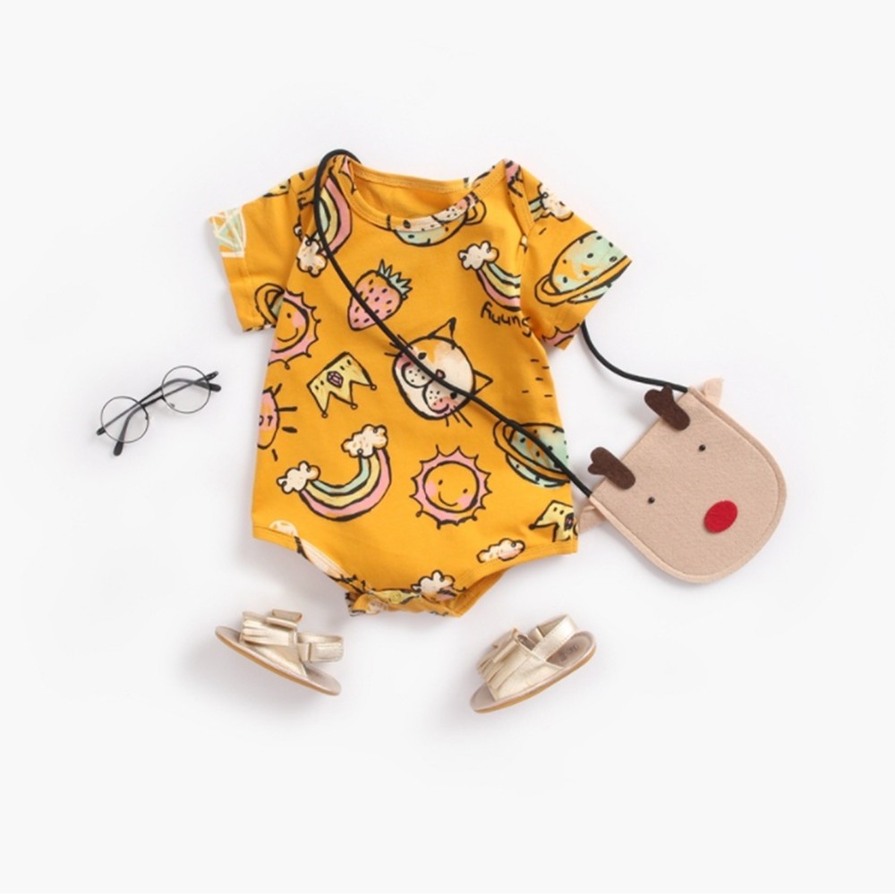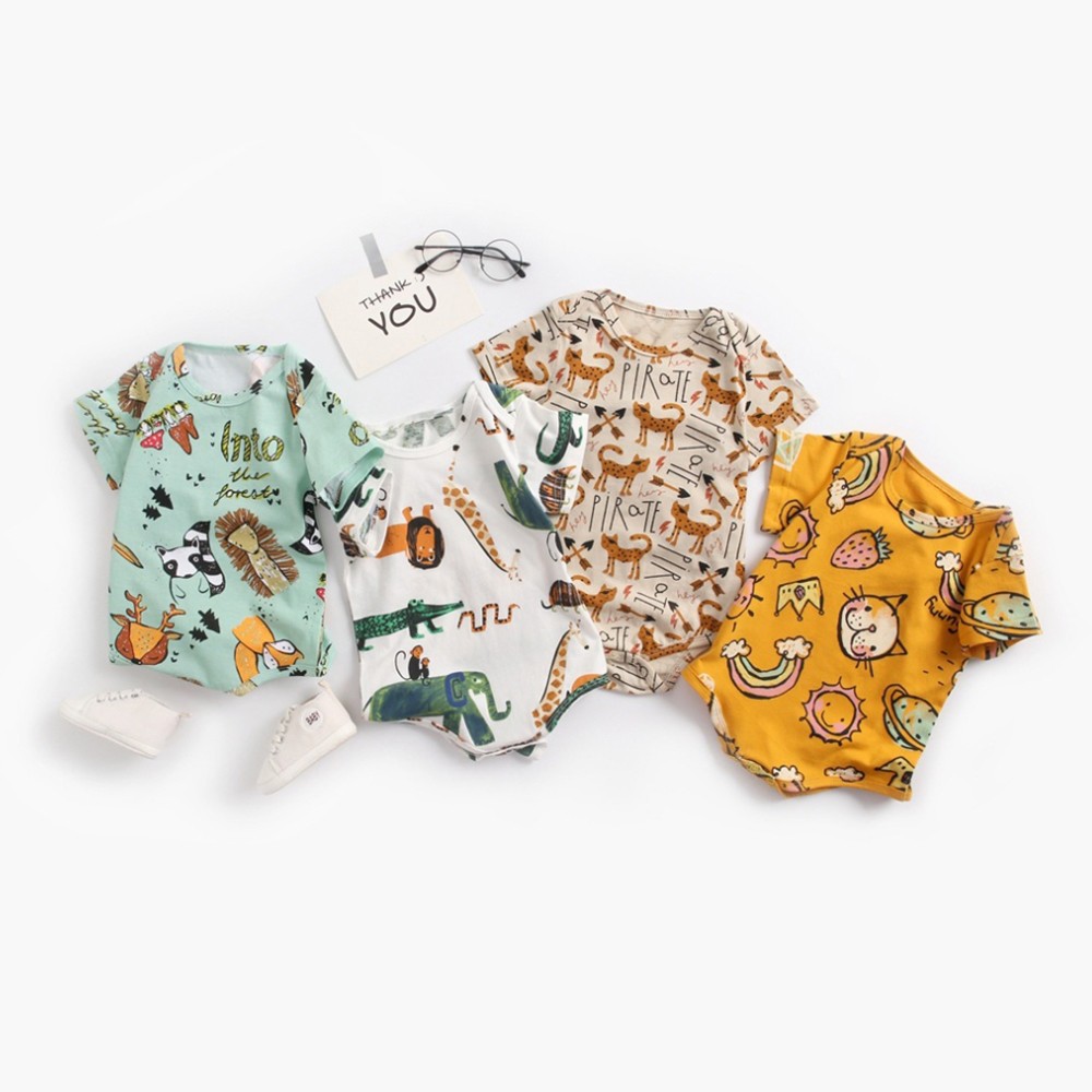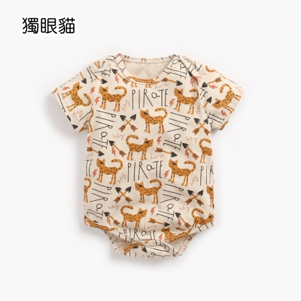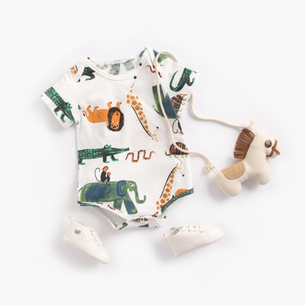 動物手繪塗鴉短袖信封領包屁衣 連身衣 現貨 童裝 嬰兒 新生兒 寶寶 男童 兒童 橘魔法【p0061224812821】