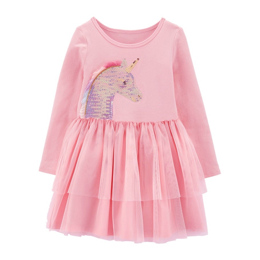 閃亮亮片獨角獸拼接紗裙長袖洋裝 洋裝 紗裙 連身裙 現貨 女童 童裝 橘魔法 中童【p0061220190293】