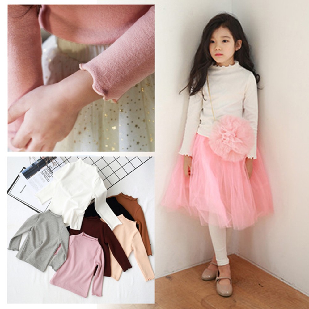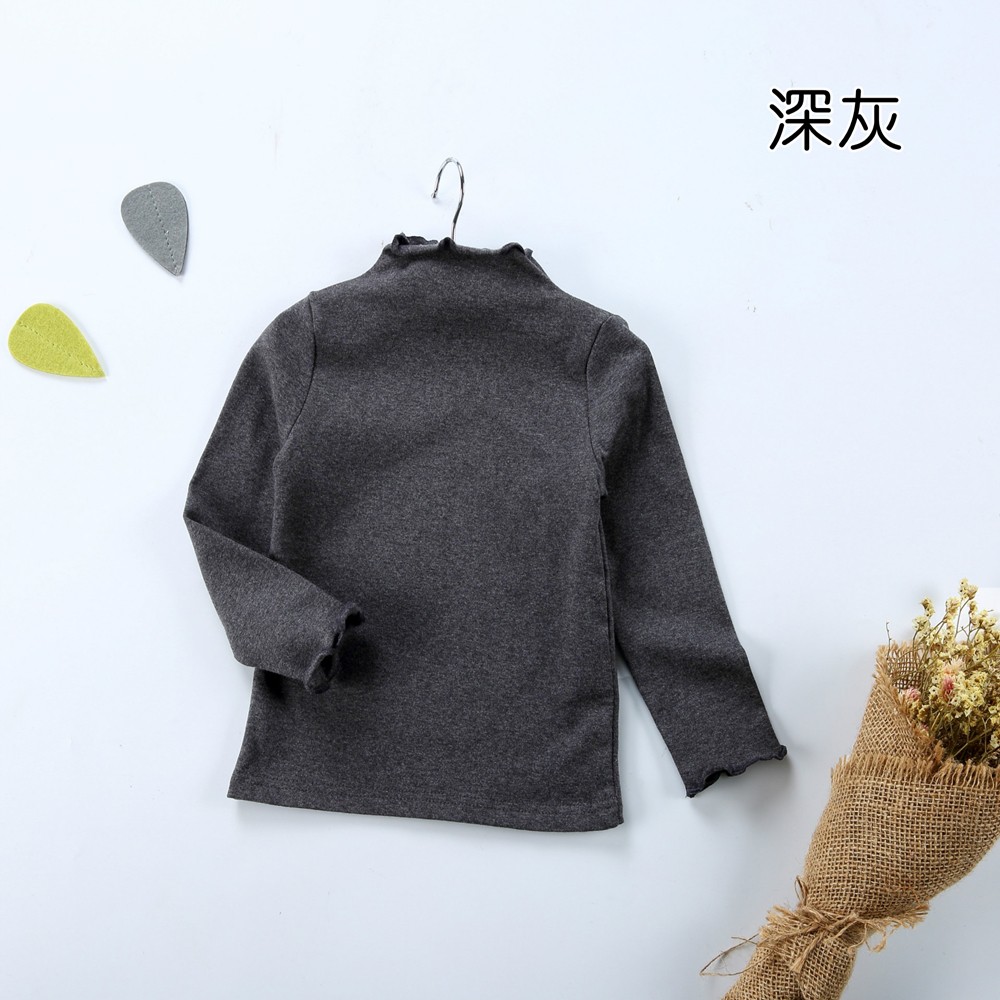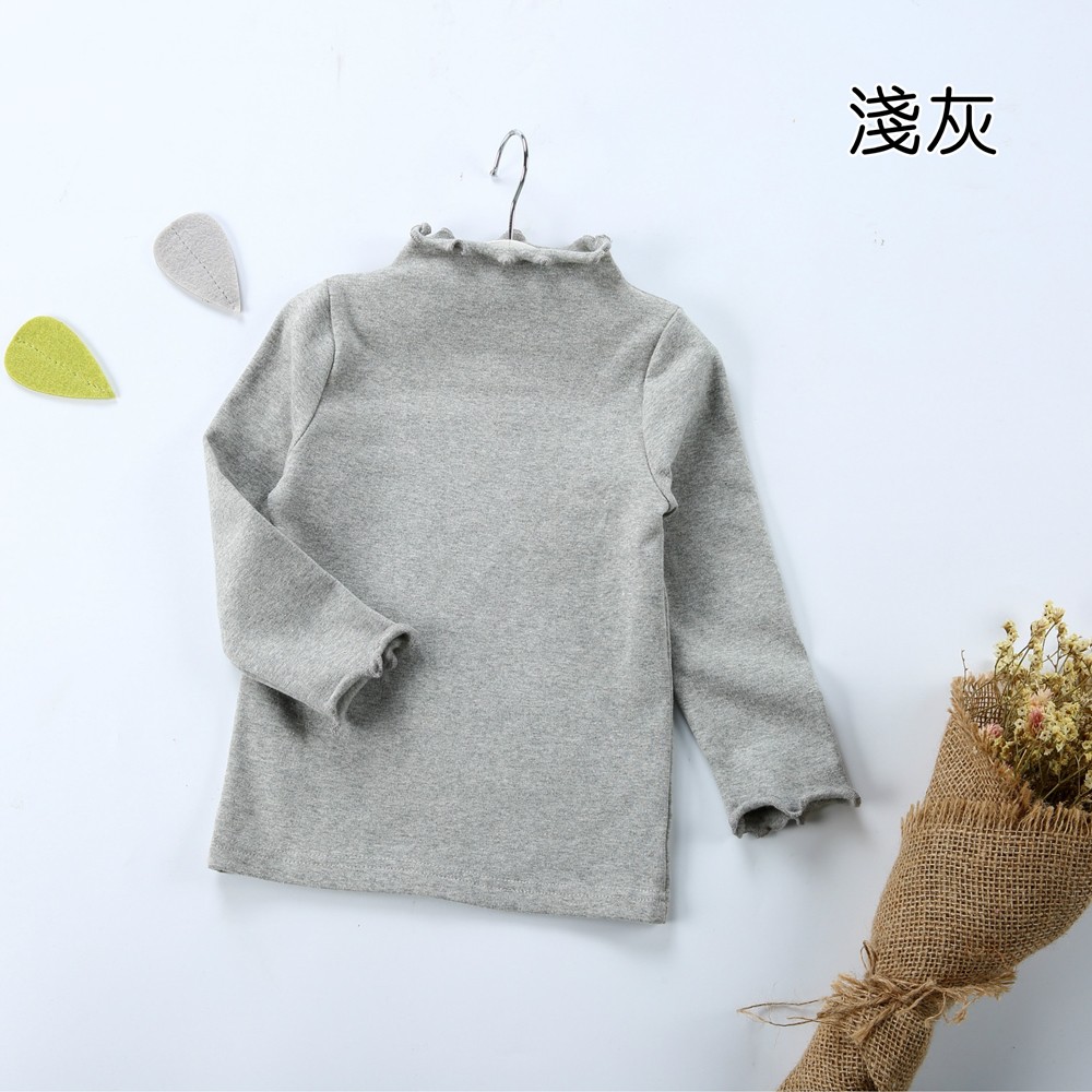 素色木耳邊半高領長袖上衣 打底衫 內搭衣 上衣 橘魔法 現貨 童裝 兒童 女童 小童 【p0061222418985】