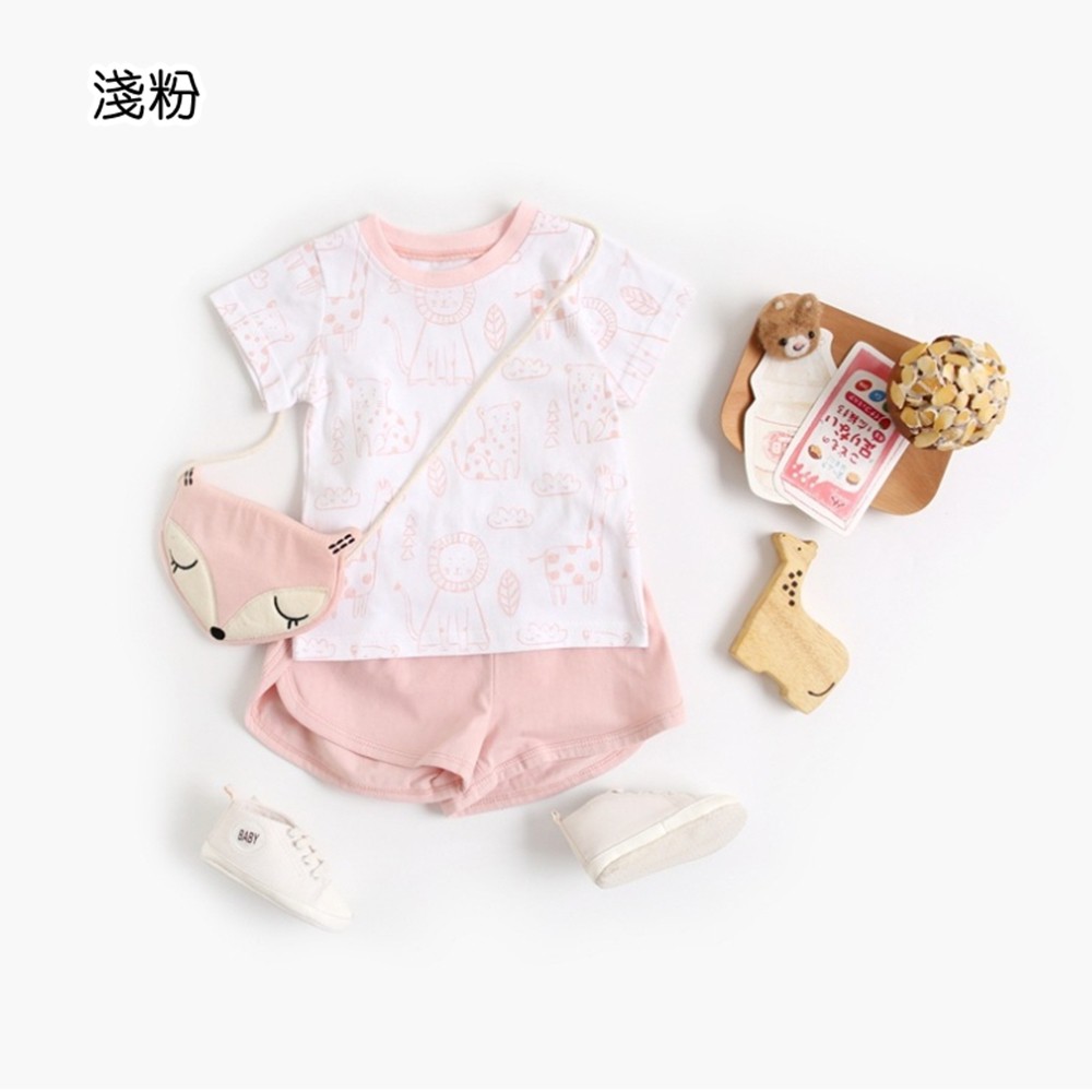 純棉滿印動物短袖上衣+滾邊運動短褲 短袖套裝 現貨 童裝 寶寶 男童 女童 兒童 【BB6660】
