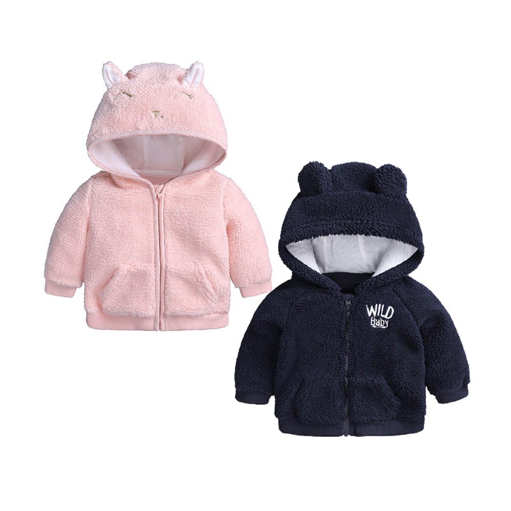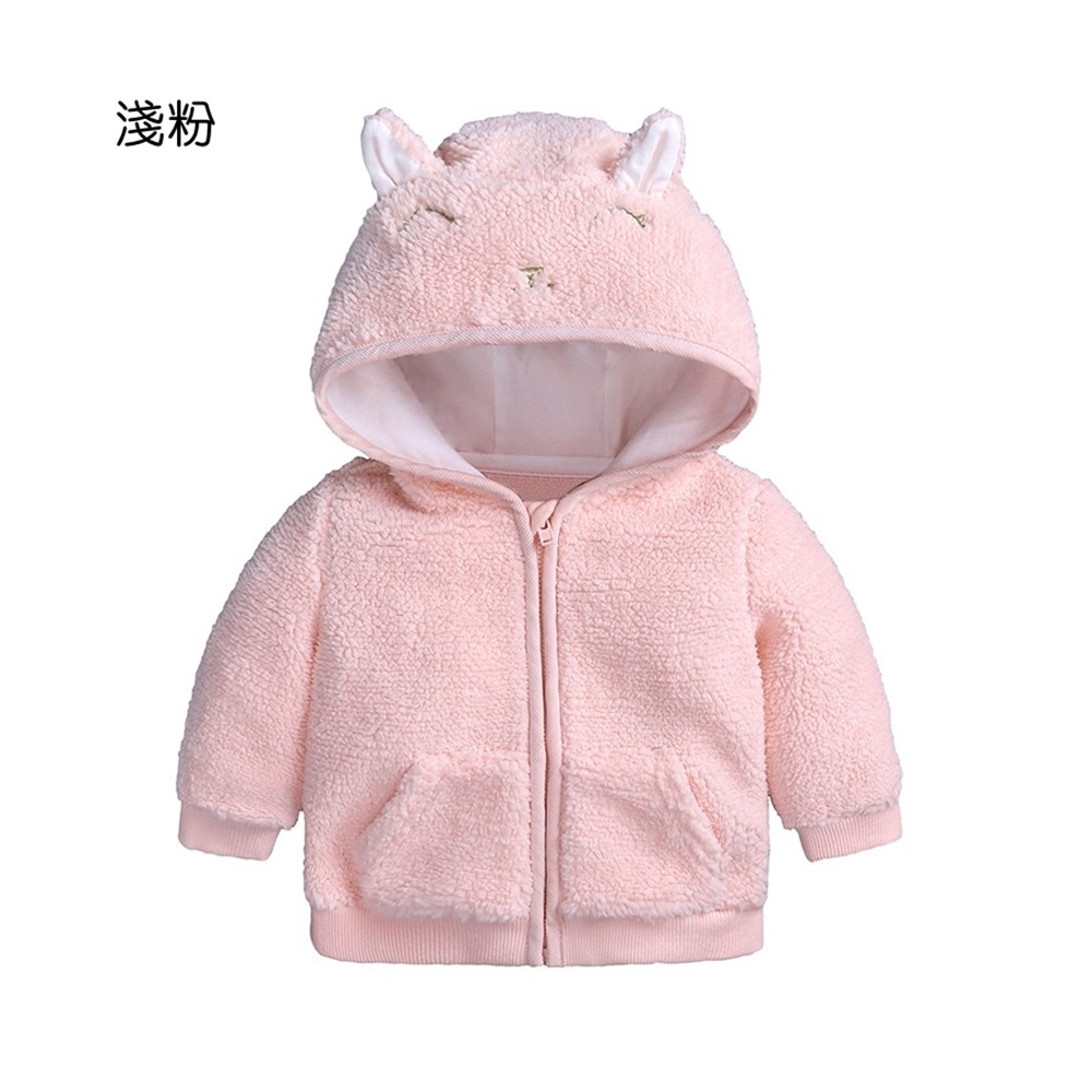 動物造型耳朵抓絨連帽長袖拉鍊外套 寶寶 新生兒 嬰兒 小童 厚外套 女童 男童【p0061219898263】