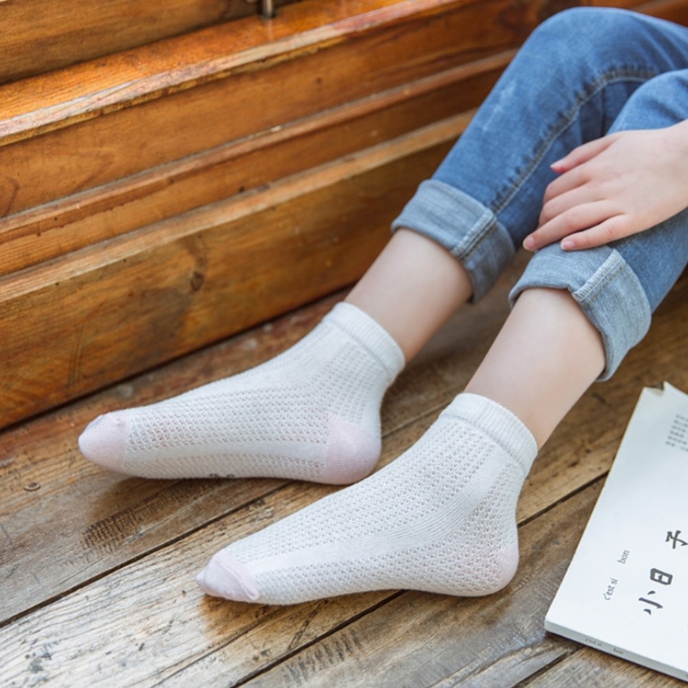 (5雙一組) 透氣網眼 直條紋路短襪 白色短襪 襪子 橘魔法 現貨 女童 男童 短襪 【p0061224704740】