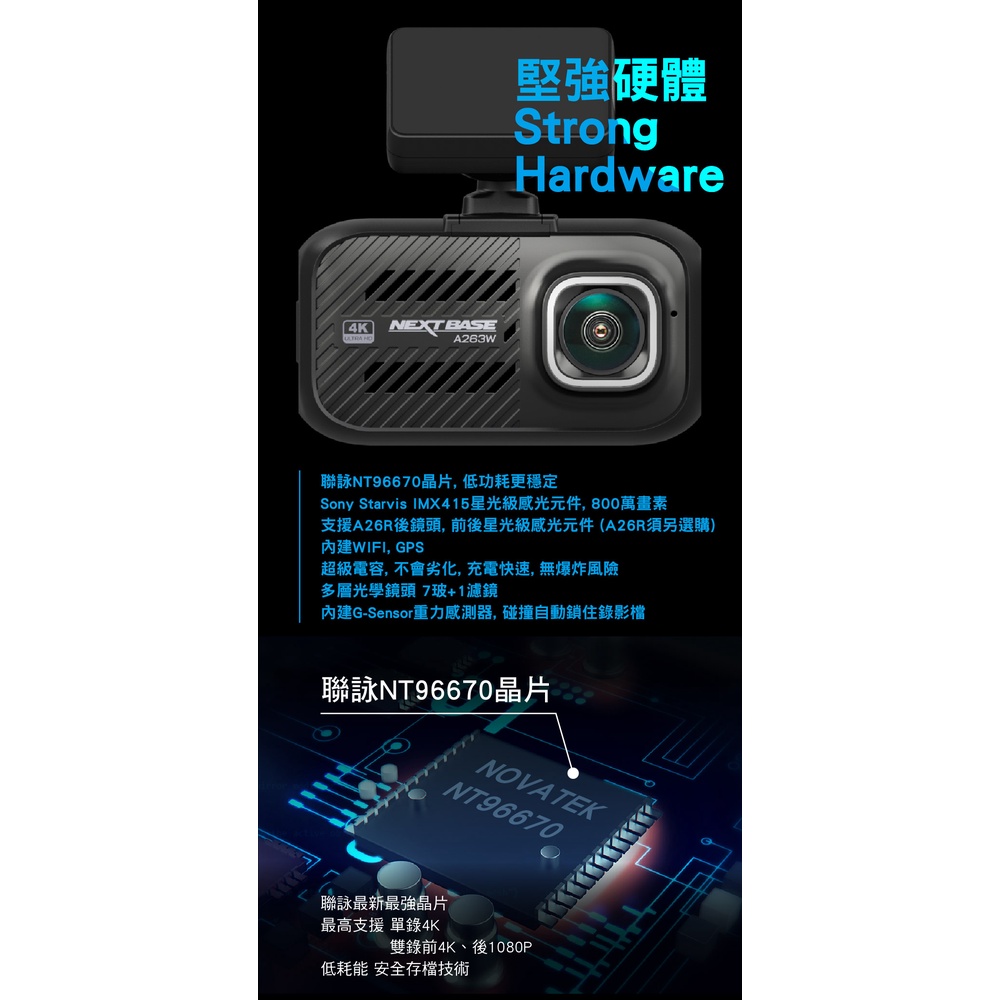 NEXTBASE A263W+A26R 前後雙鏡 行車記錄器 4K WIFI Sony Starvis 1080