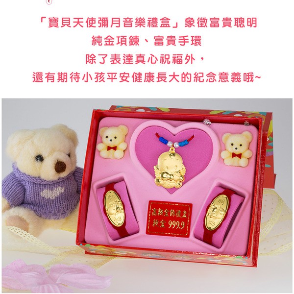 威世登 999.9黃金彌月音樂禮盒 寶貝天使三件組 約0.2錢 GP00021-2-FEX-GHX