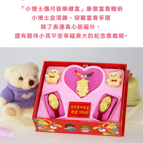 威世登 999.9黃金彌月音樂禮盒 小博士三件組約0.2錢-GP00021-26-GHX