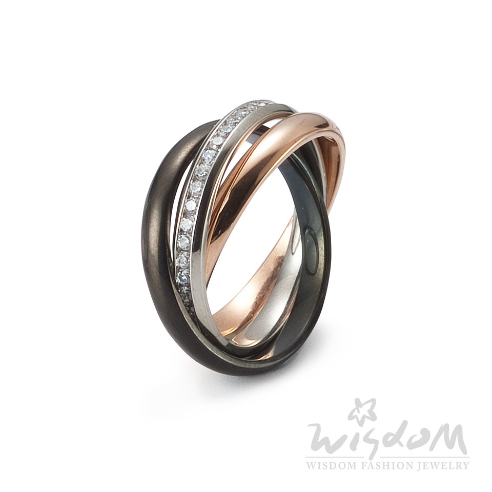 威世登 316L白石三色鋼環套女戒 A14GNA00001-CDEX