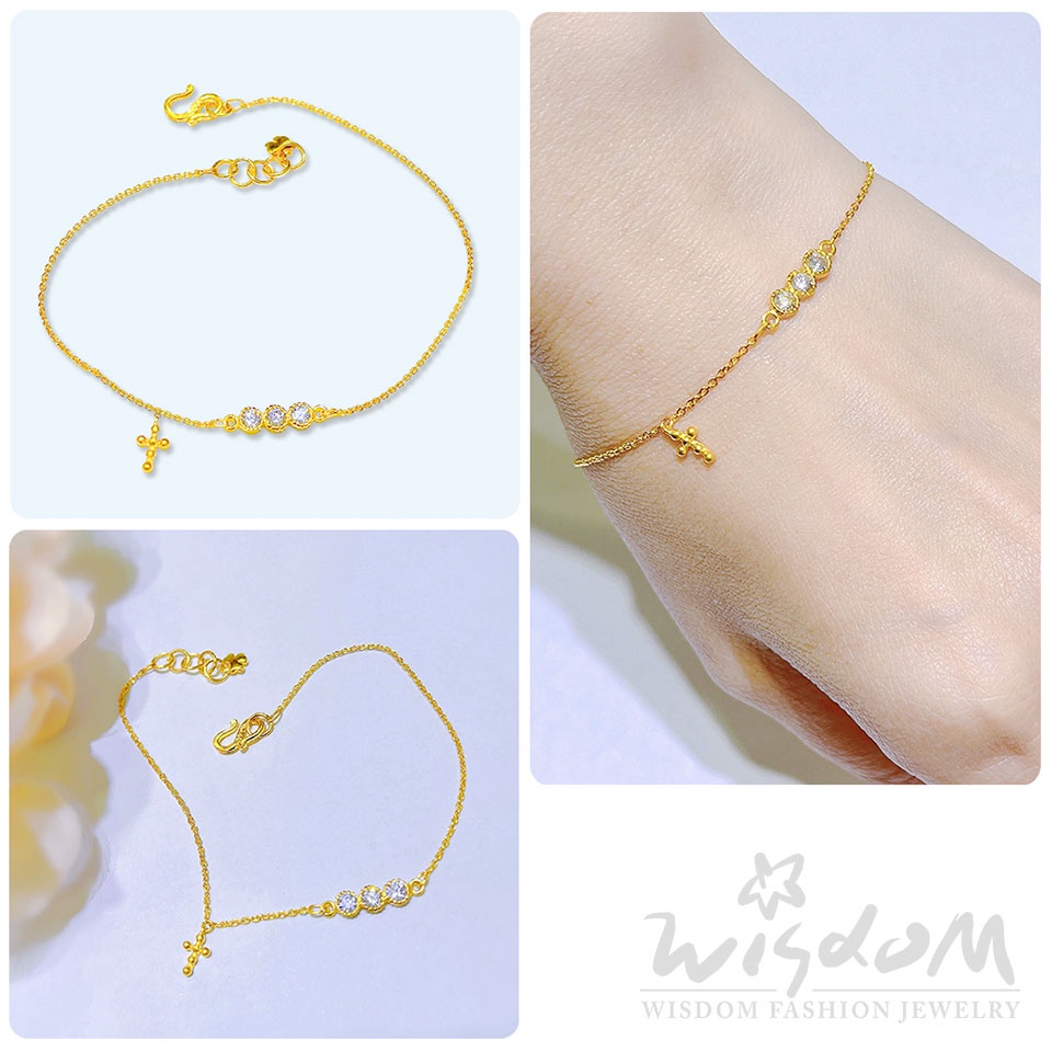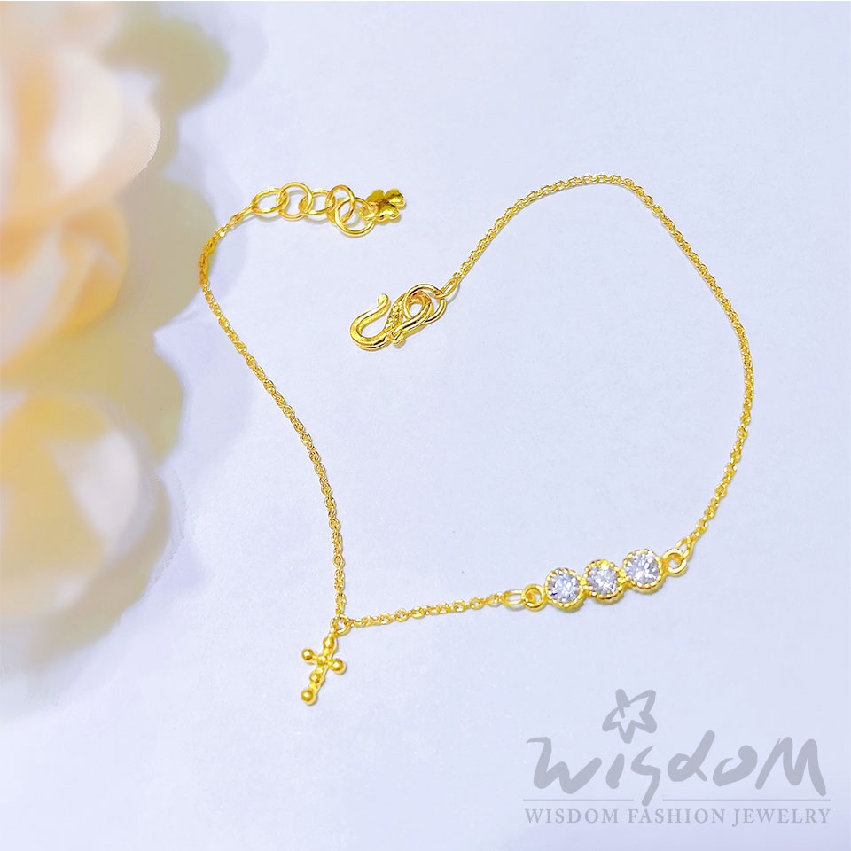 威世登 黃金十字架鑲白石手鍊 金重約0.74~0.76錢 情人節 母親節 生日禮 推薦 GC02119-AEXX-GHX