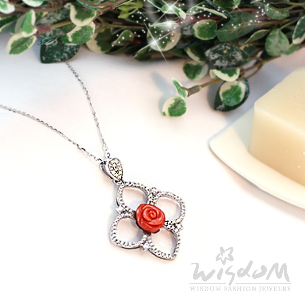 威世登 珊瑚銀墜-天然海洋紅珊瑚 紅玫瑰墜飾(不含鍊)- CD00100-免運