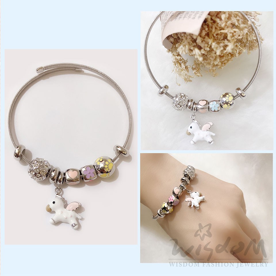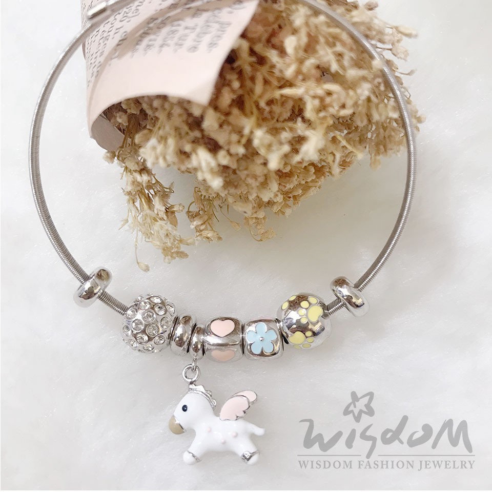 威世登 小白馬潘朵拉串飾銀手鐲 SE00133-EAHX