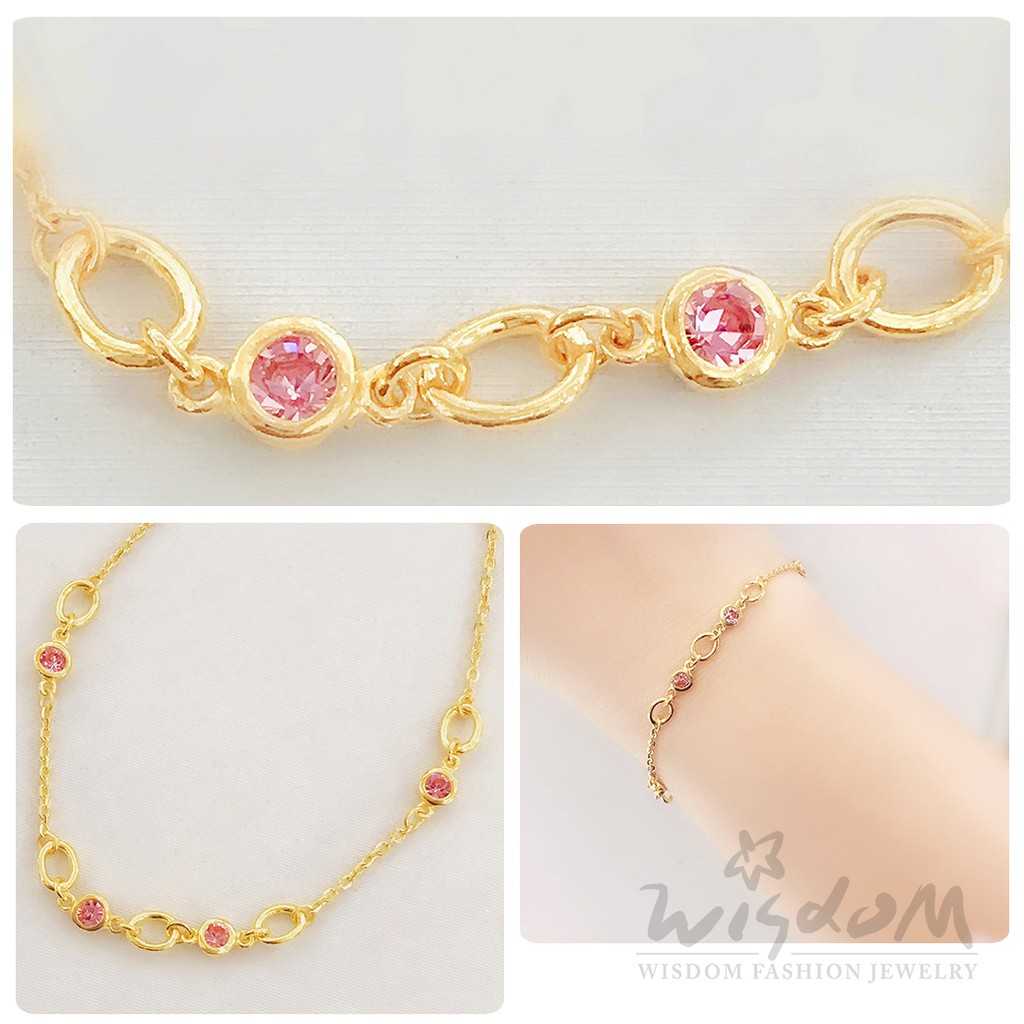 威世登 黃金鑲粉石手鍊 金重約1.20~1.23錢 GC01291-ADXX-GHX