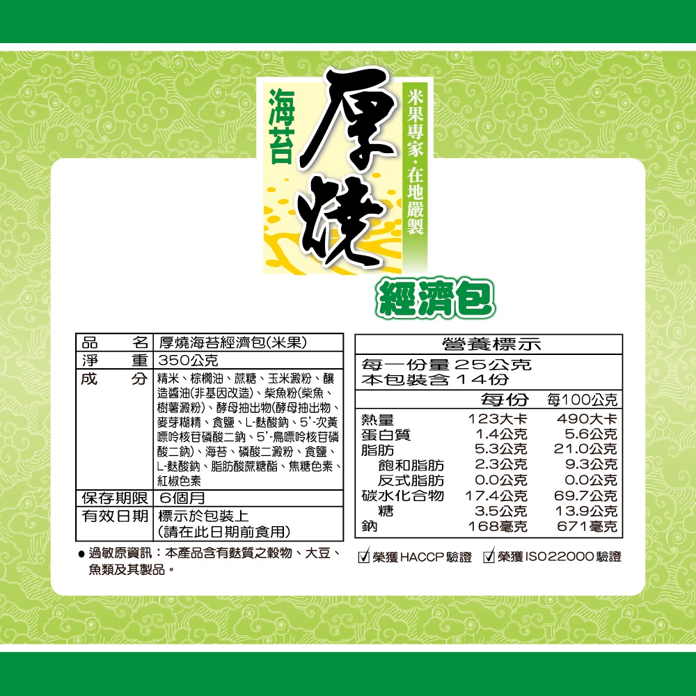 旺旺WANT WANT 厚燒海苔經濟包350g 醬燒海苔 米果 古早味零食零嘴米果米餅團購辦公室下午茶