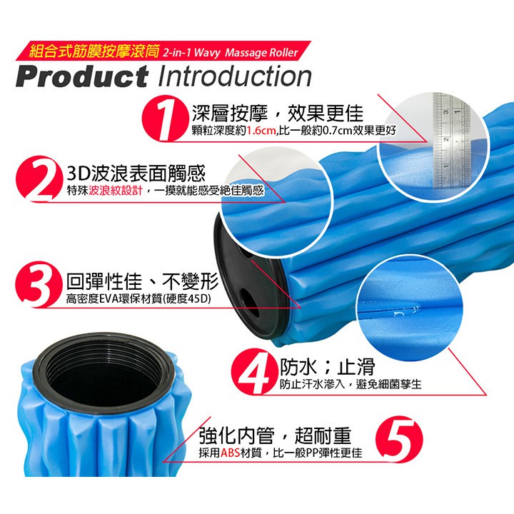 【LUX YOGA】45D 可組合式按摩滾筒(波浪紋) 台灣製 瑜珈滾輪 筋膜放鬆 狼牙棒 瑜珈柱 瑜珈用品 按摩滾輪
