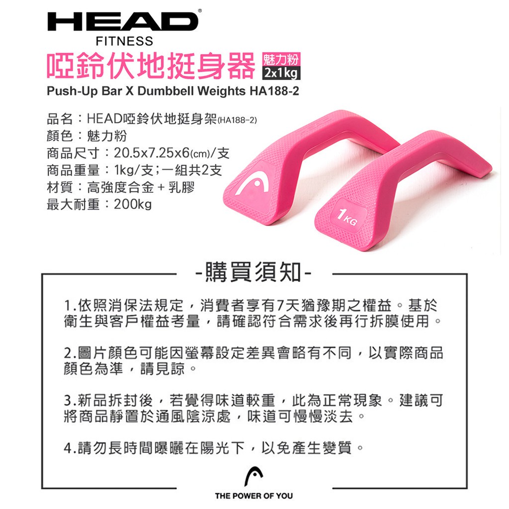 HEAD海德 啞鈴伏地挺身器 2KG(1KG/2支入) 造型啞鈴 輔助 重訓韻律瑜珈用品 粉紅健身女孩禮物 鄭多燕體操
