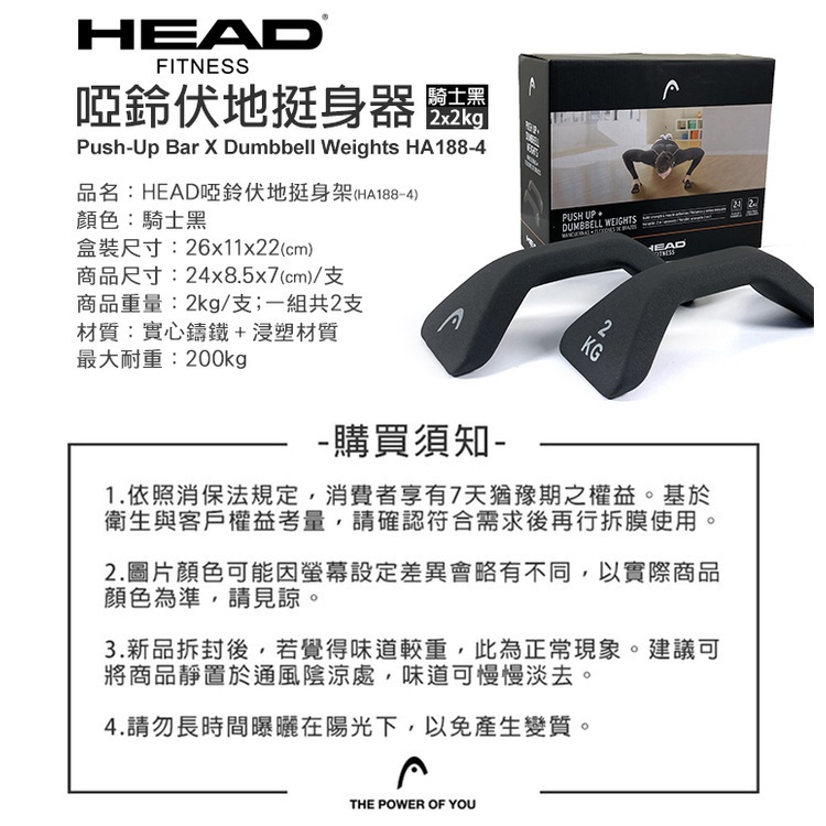 HEAD海德 啞鈴伏地挺身器 4KG(2KG/2支入) 造型啞鈴 輔助 重訓韻律瑜珈用品 健身女孩 鄭多燕體操