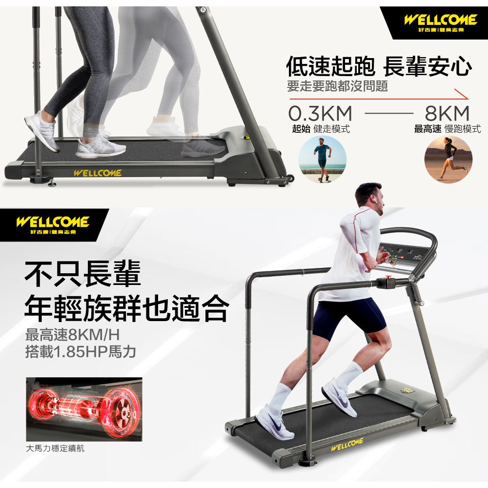 WELLCOME好吉康 T9 樂活跑步機 低跑台低起速 安全防護帶 大屏面板 銀髮族樂齡健走慢走 走路機