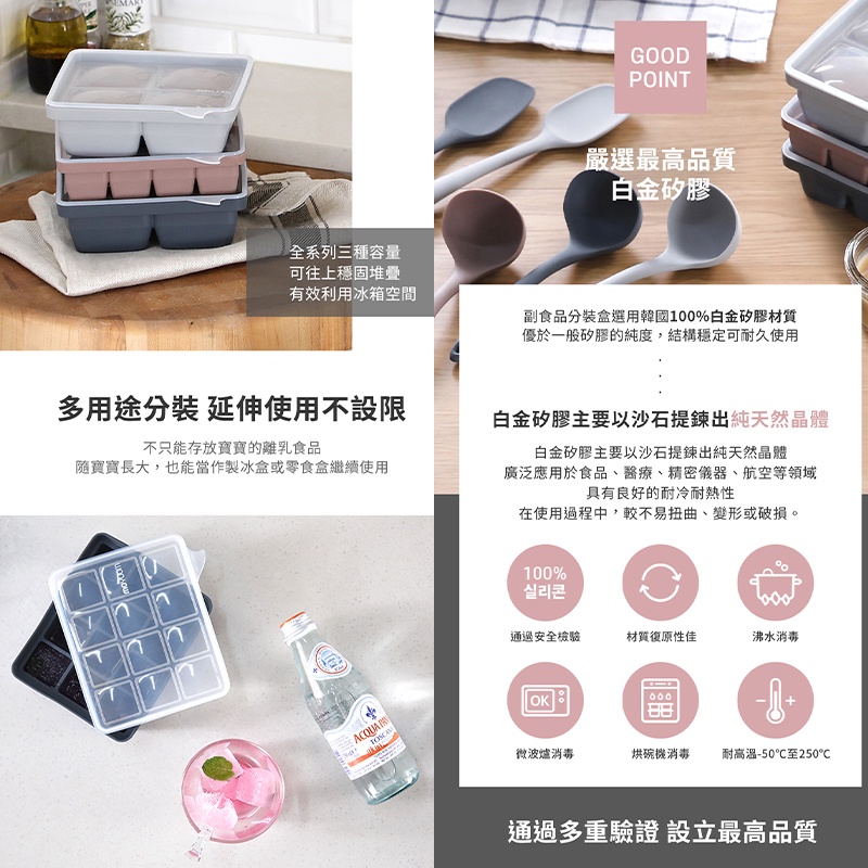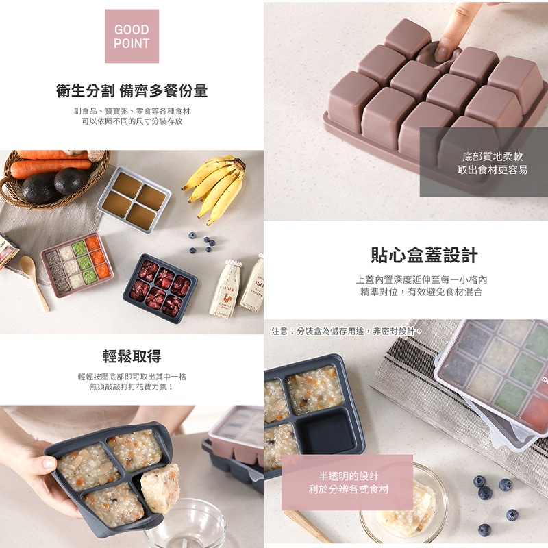 韓國MOYUUM 白金矽膠副食品分裝盒(4格/6格/12格) 米菲寶貝