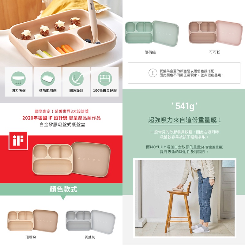 韓國MOYUUM 白金矽膠吸盤式餐盤盒(多色可選) 米菲寶貝