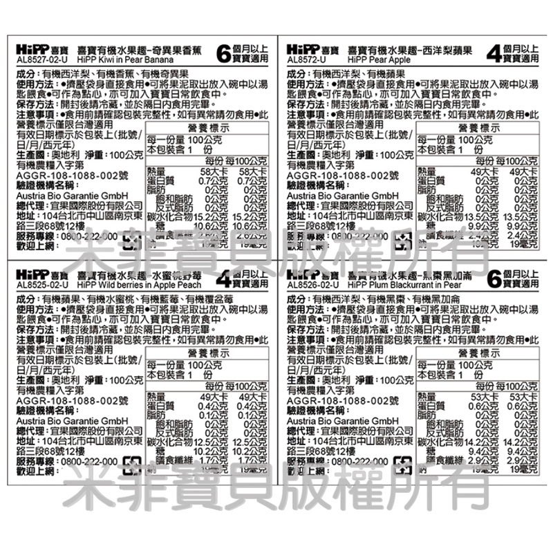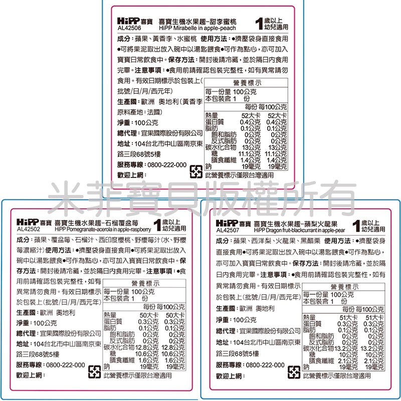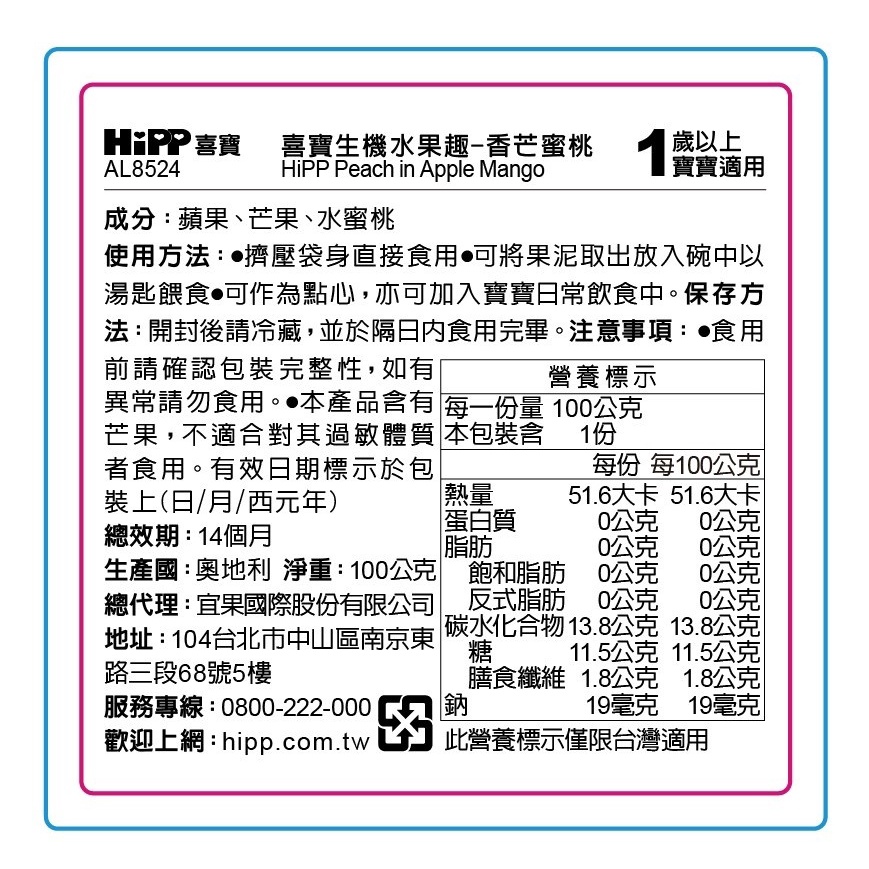 HiPP喜寶 有機水果趣(11款口味)100g 適合六個月以上 米菲寶貝