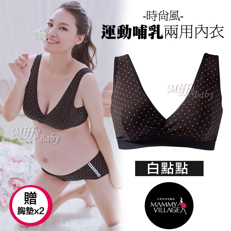 【六甲村】時尚風運動哺乳兩用內衣(白點點)-米菲寶貝