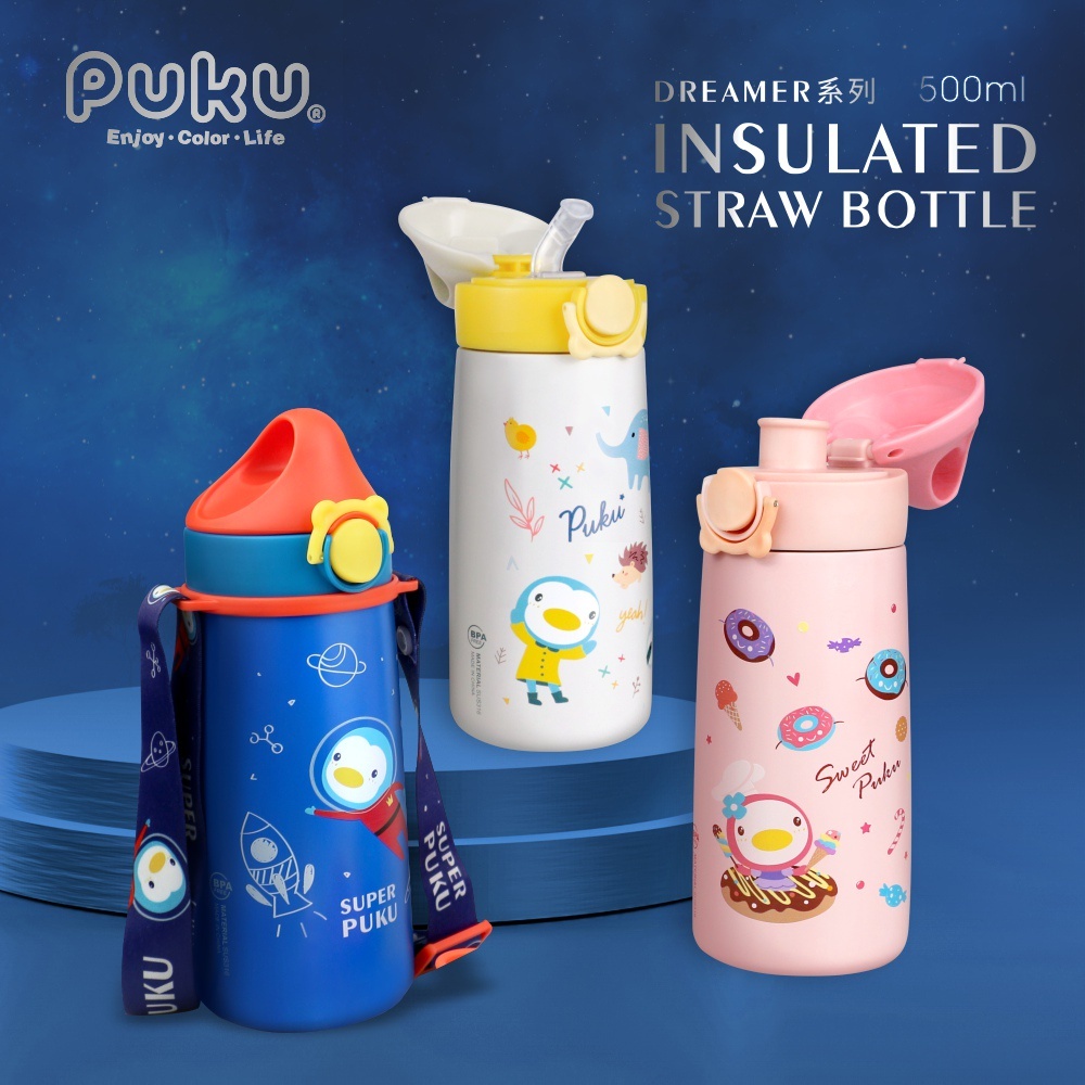 PUKU藍色企鵝 Dreamer不鏽鋼吸管保溫水壺(附直飲蓋) 米菲寶貝