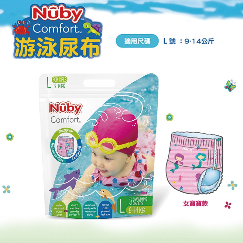 Nuby 游泳戲水褲 女L(3片裝) 游泳尿布 米菲寶貝