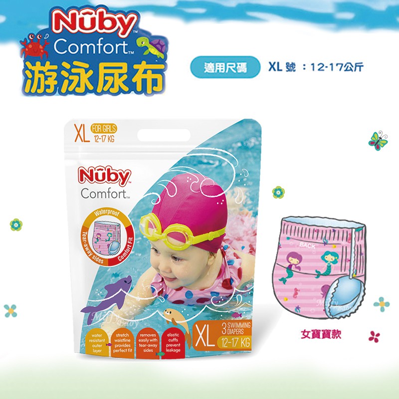 Nuby 游泳戲水褲 女XL(3片裝) 游泳尿布 米菲寶貝