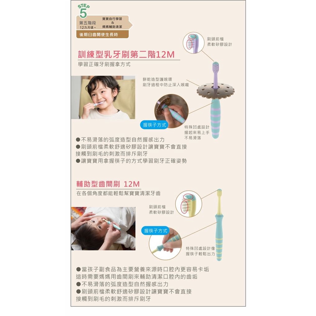 Richell利其爾 輔助型乳牙刷(6M) 米菲寶貝