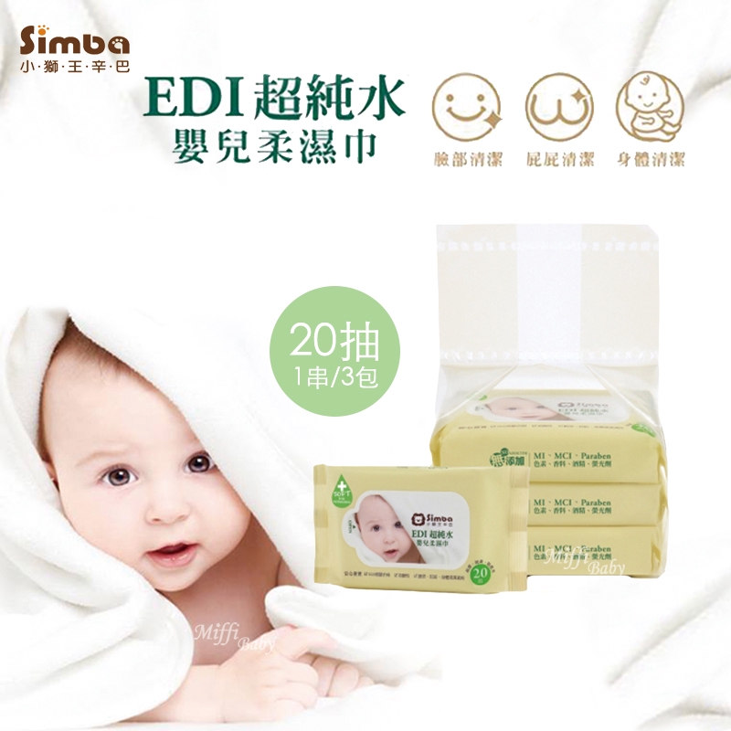 Simba小獅王 EDI超純水嬰兒柔濕巾組合包(20抽)濕紙巾 米菲寶貝