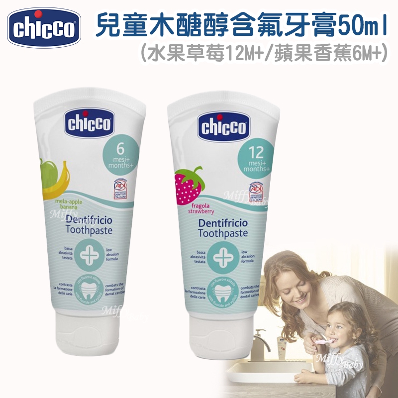 Chicco 兒童木醣醇含氟牙膏50ml(水果草莓/蘋果香蕉/鳳梨水果) 1000ppm含氟 米菲寶貝