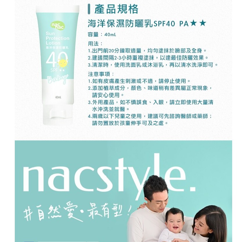 nac nac 海洋保濕防曬乳(40ml) 米菲寶貝