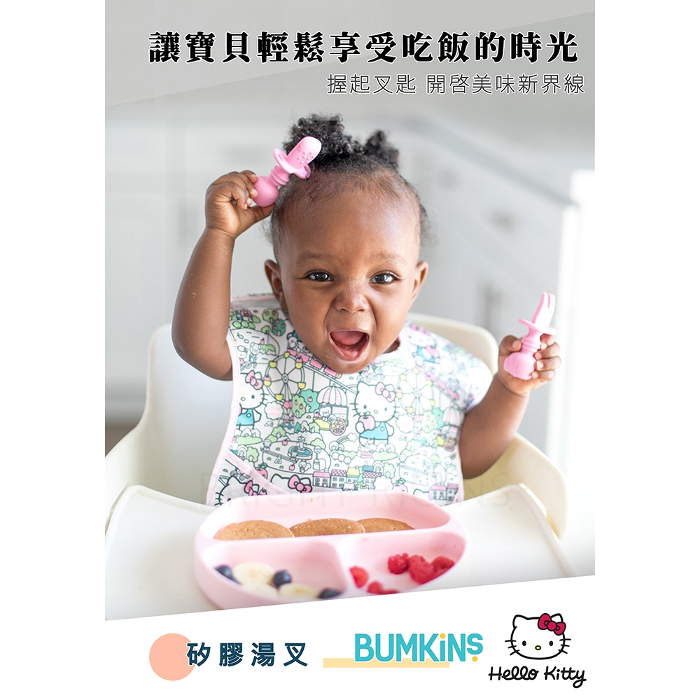 美國 Bumkins 寶寶矽膠叉匙組(Hello Kitty) 米菲寶貝