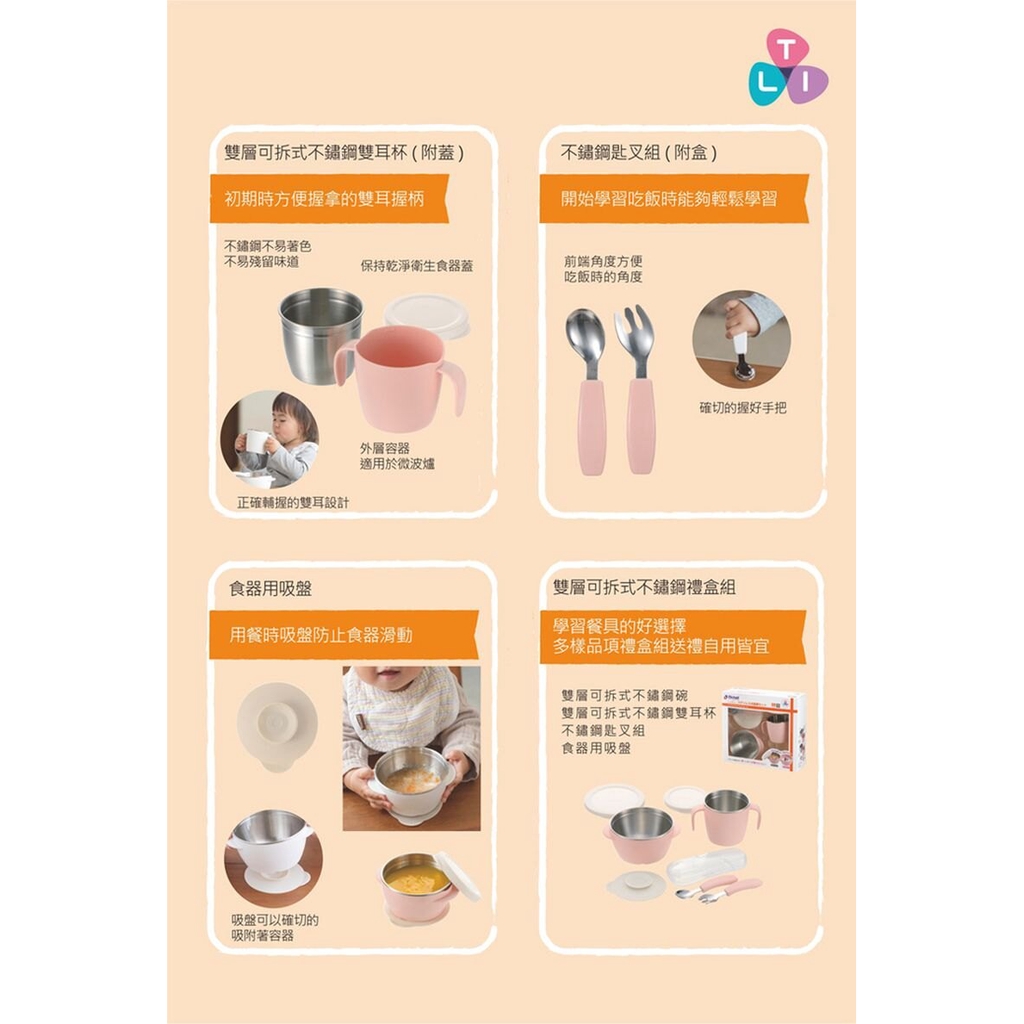 Richell 利其爾 雙層可拆式不鏽鋼雙耳杯260ml(附蓋) 米菲寶貝