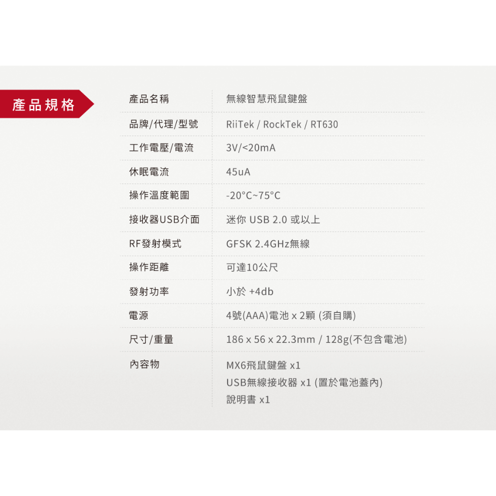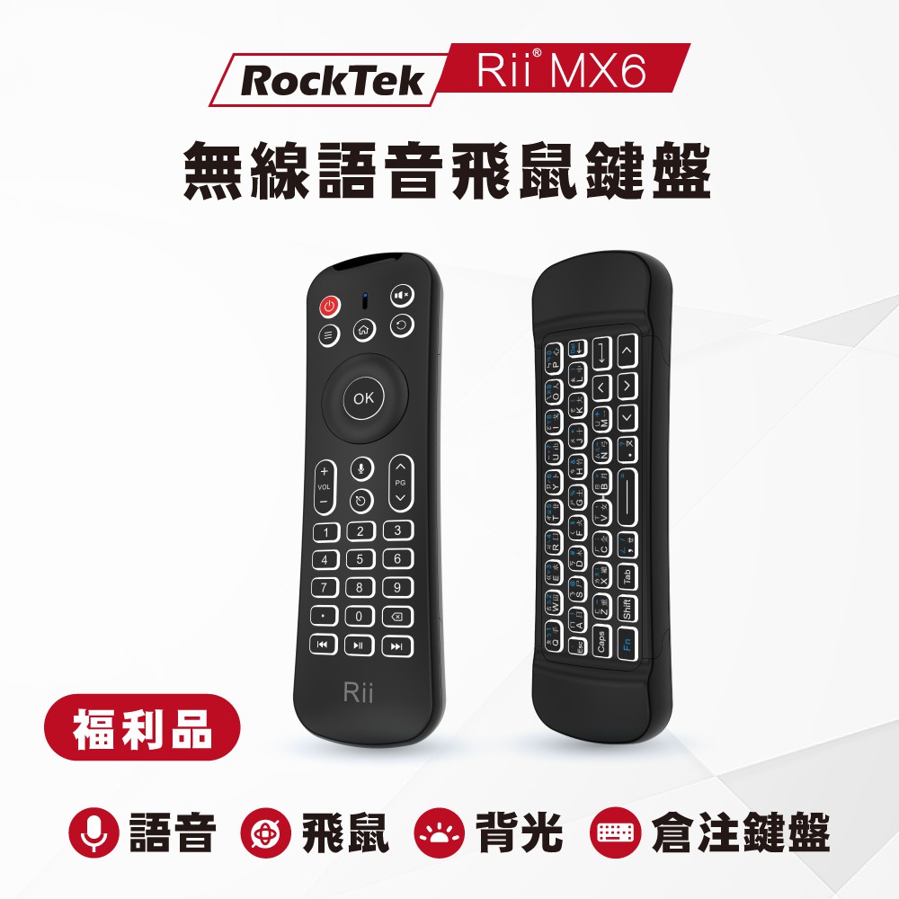 RockTek Rii MX6 | 無線語音飛鼠鍵盤遙控器【福利品】倉頡注音 背光