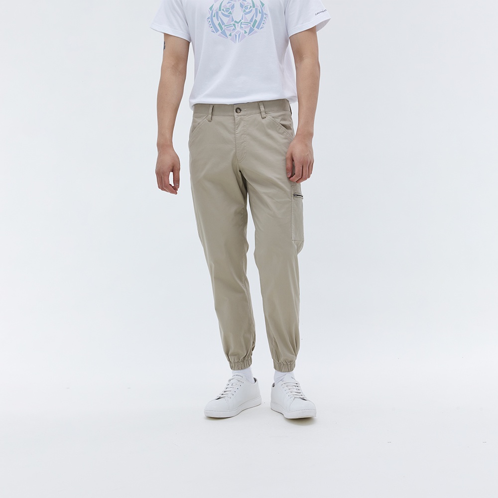 【Carnival嘉裕】單邊拉鍊口袋縮口休閒棉質九分束口褲-輕柔舒適-男裝-卡其色 L22S23405722000