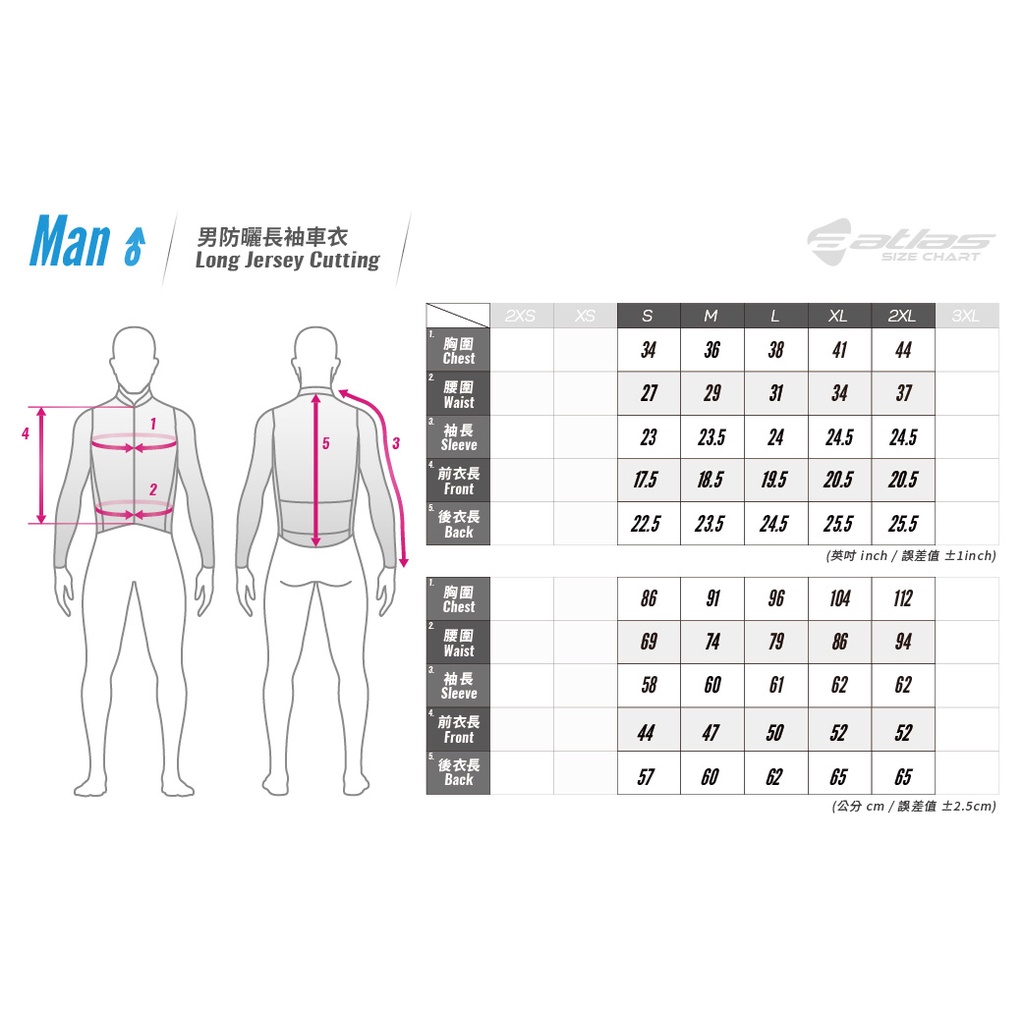 【Atlas 亞特力士】2022春夏 男休閒涼感長袖車衣