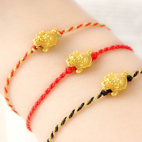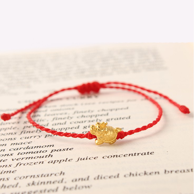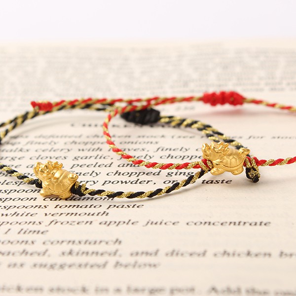 純金9999 0.08錢 龍龜雙股手鍊 三色選 吉祥福壽 蠟繩防水 黃金 永和迎鶴金品 Y-