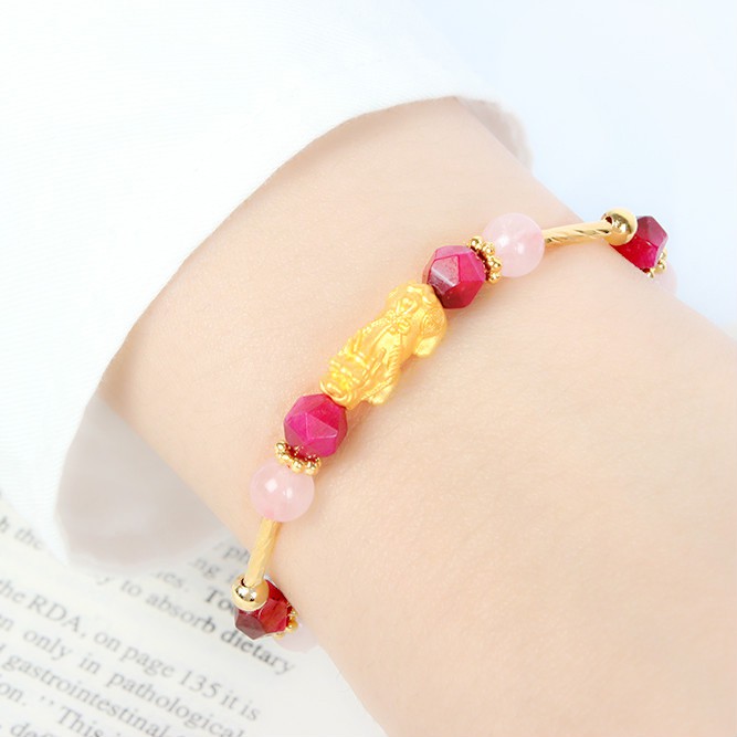 純金9999 0.08錢 貔貅浪漫-設計串珠手鍊 粉晶 玫紅虎眼 黃金 迎鶴金品 X-