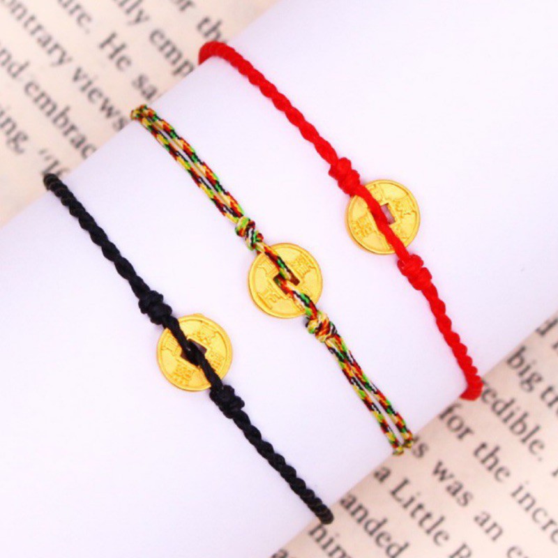 純金9999 0.04錢 五帝錢編繩手鍊 三色選 彌月 黃金 永和迎鶴金品 Y-
