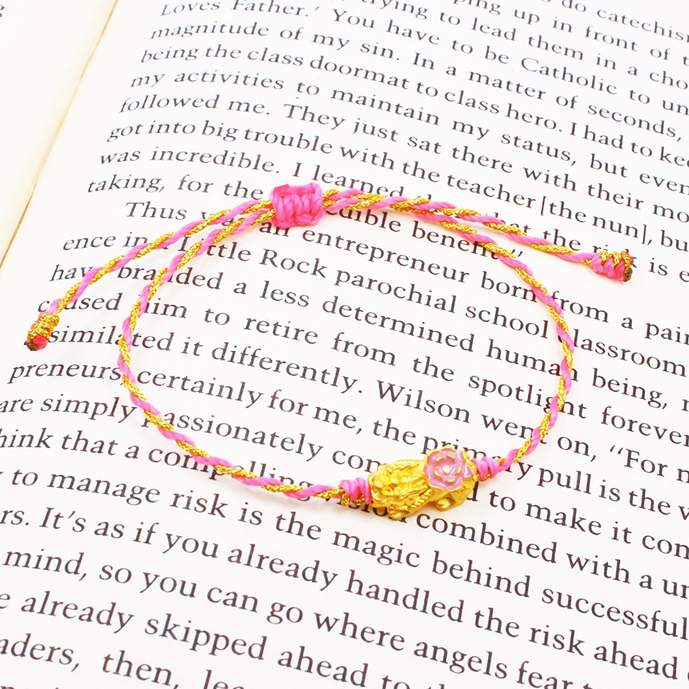 純金9999 0.08錢 有錢花貔貅雙股編手鍊 四色選 蠟繩防水 黃金 迎鶴金品 Y-