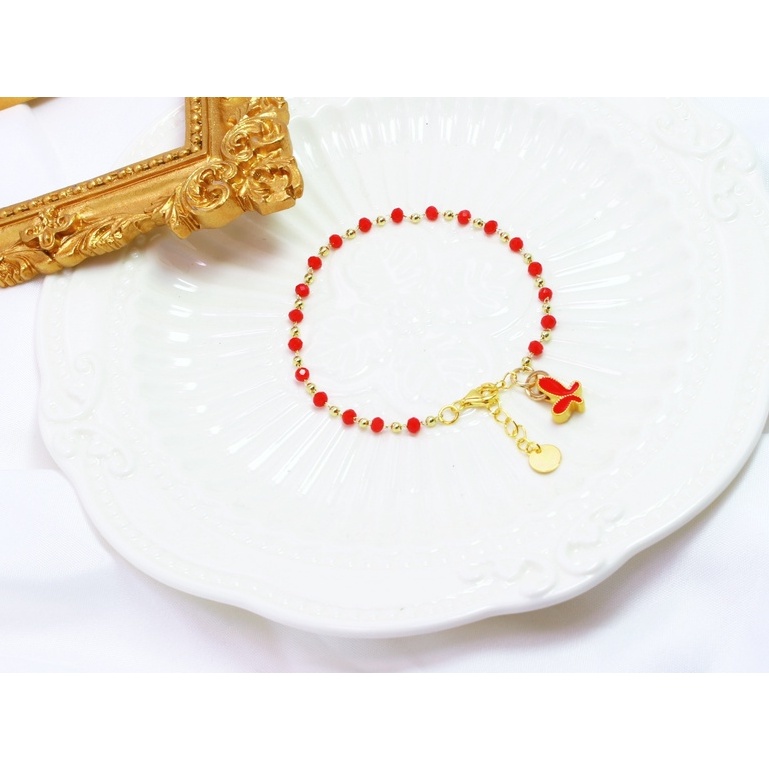 純金9999 0.04錢 優雅紅蝴蝶-設計細串珠手鍊 黃金 迎鶴金品 U-