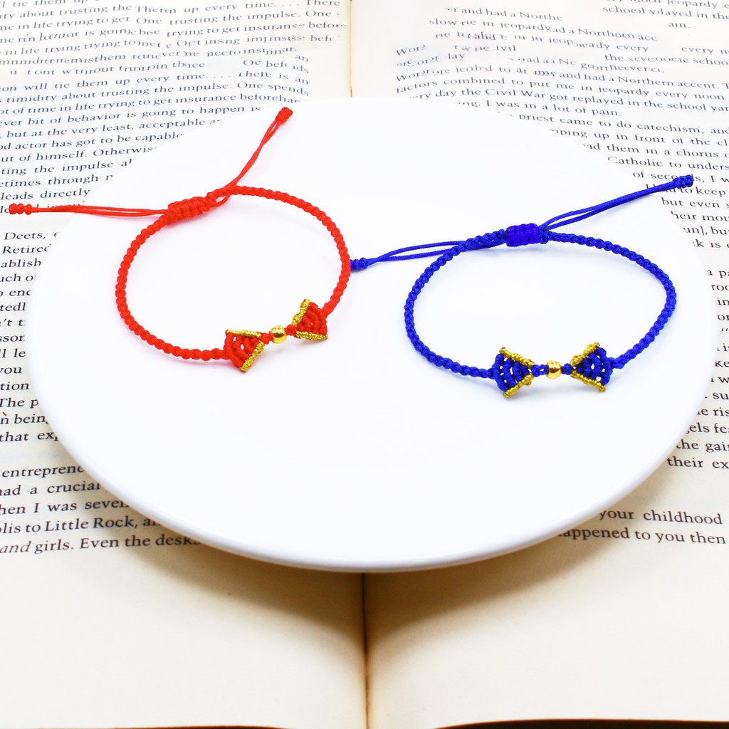 純金9999 0.01錢 金珠蝴蝶結編繩手鍊 兩色選 黃金 迎鶴金品 Y-