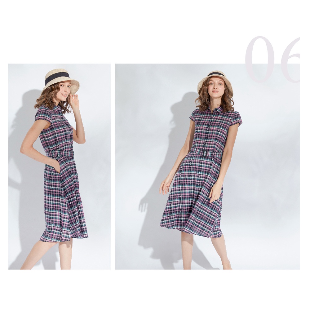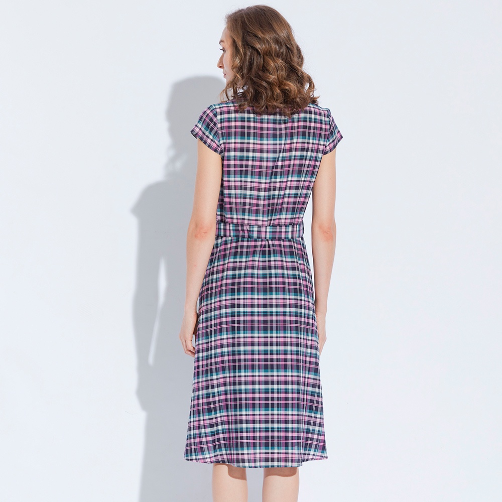 【AZUR】優雅OL有領格紋洋裝
