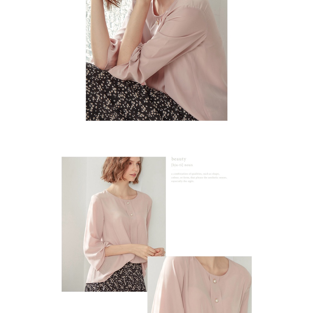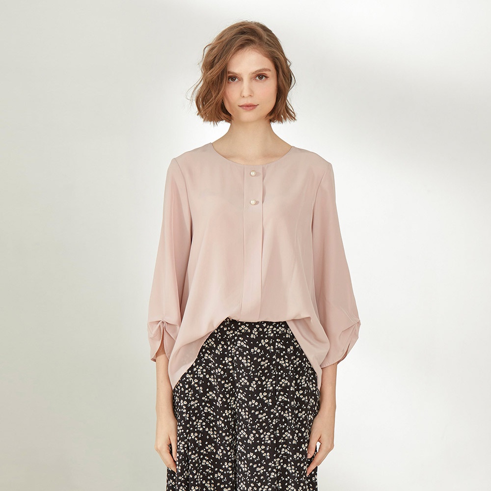 【AZUR】袖口立體抓褶珍珠上衣-3色