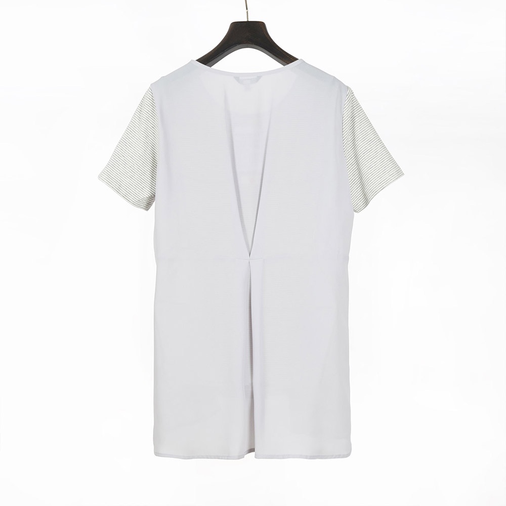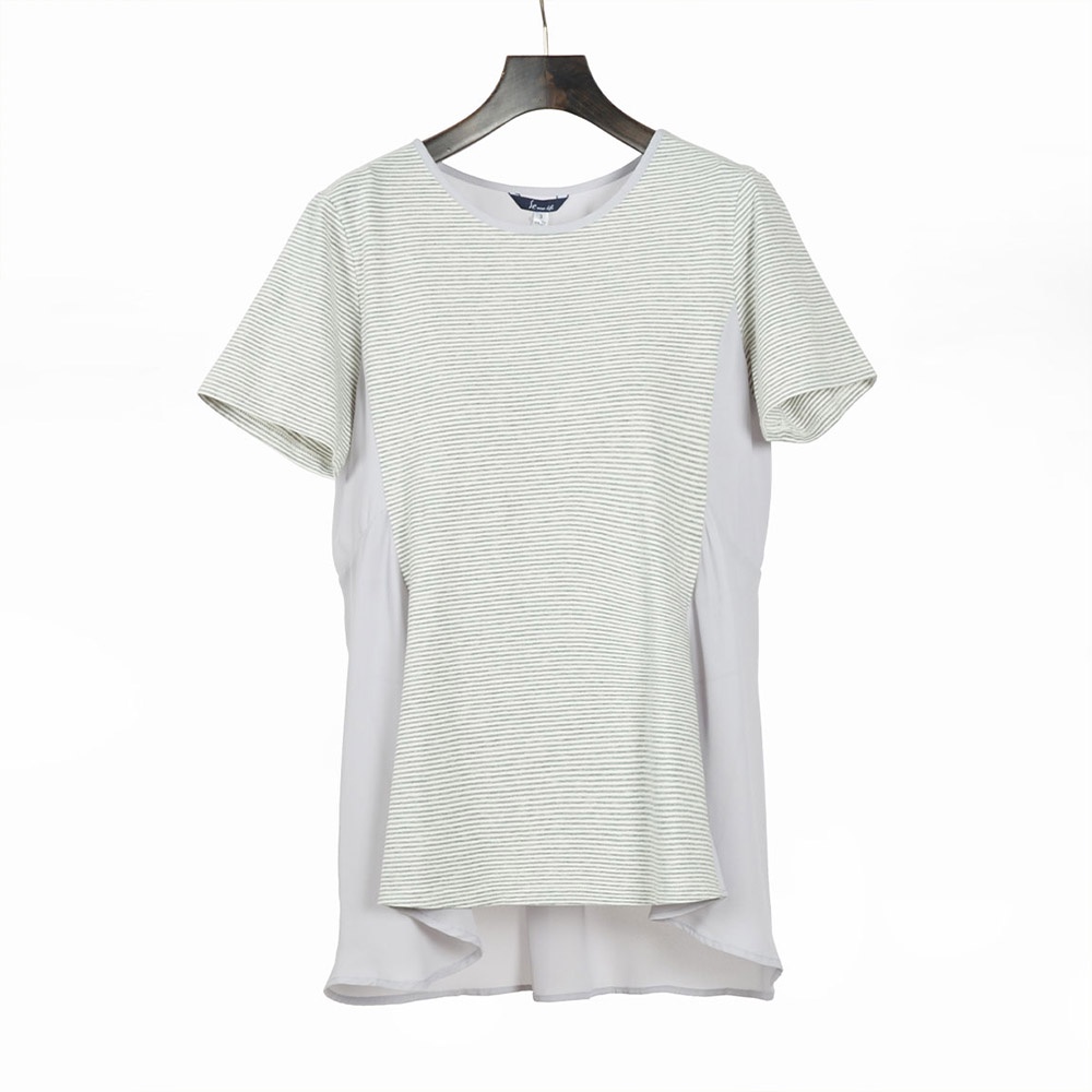 【AZUR】雪紡拼接條紋短袖T恤-2色