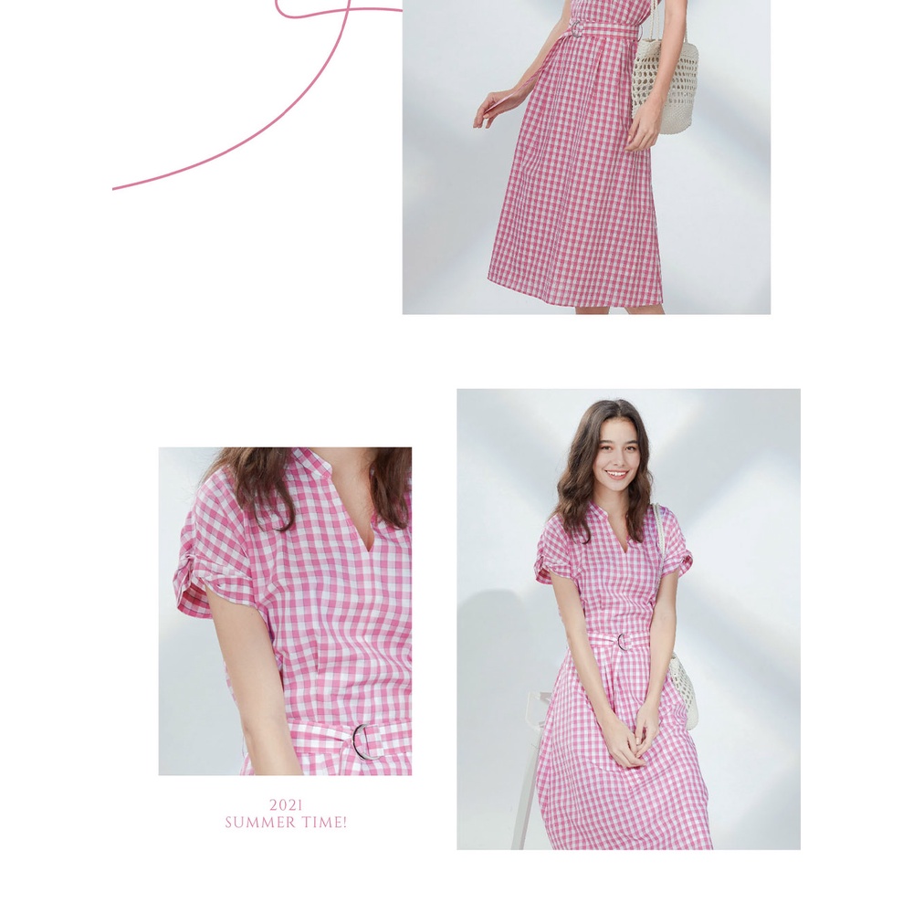 【AZUR】法式野餐綁結袖小格紋洋裝-2色