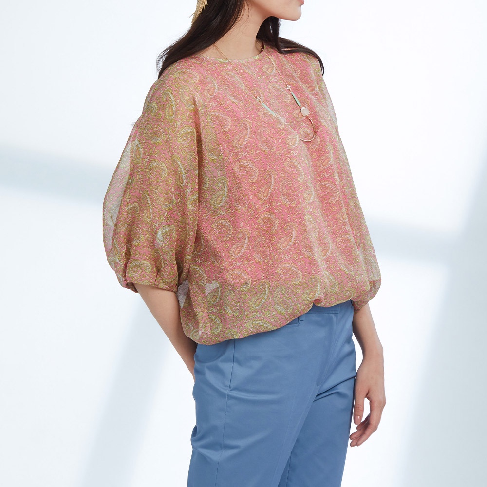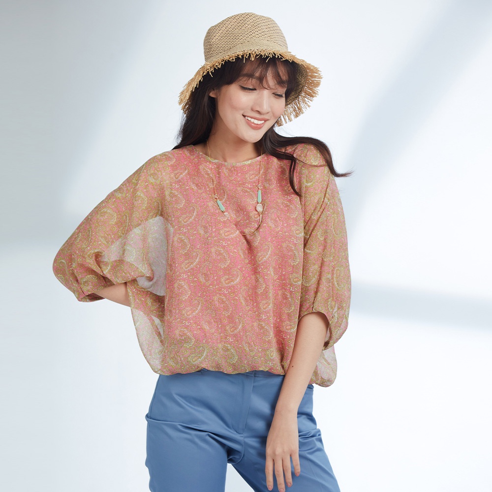 【AZUR】變形蟲印花雙層雪紡上衣