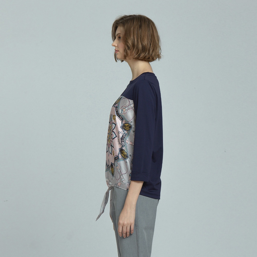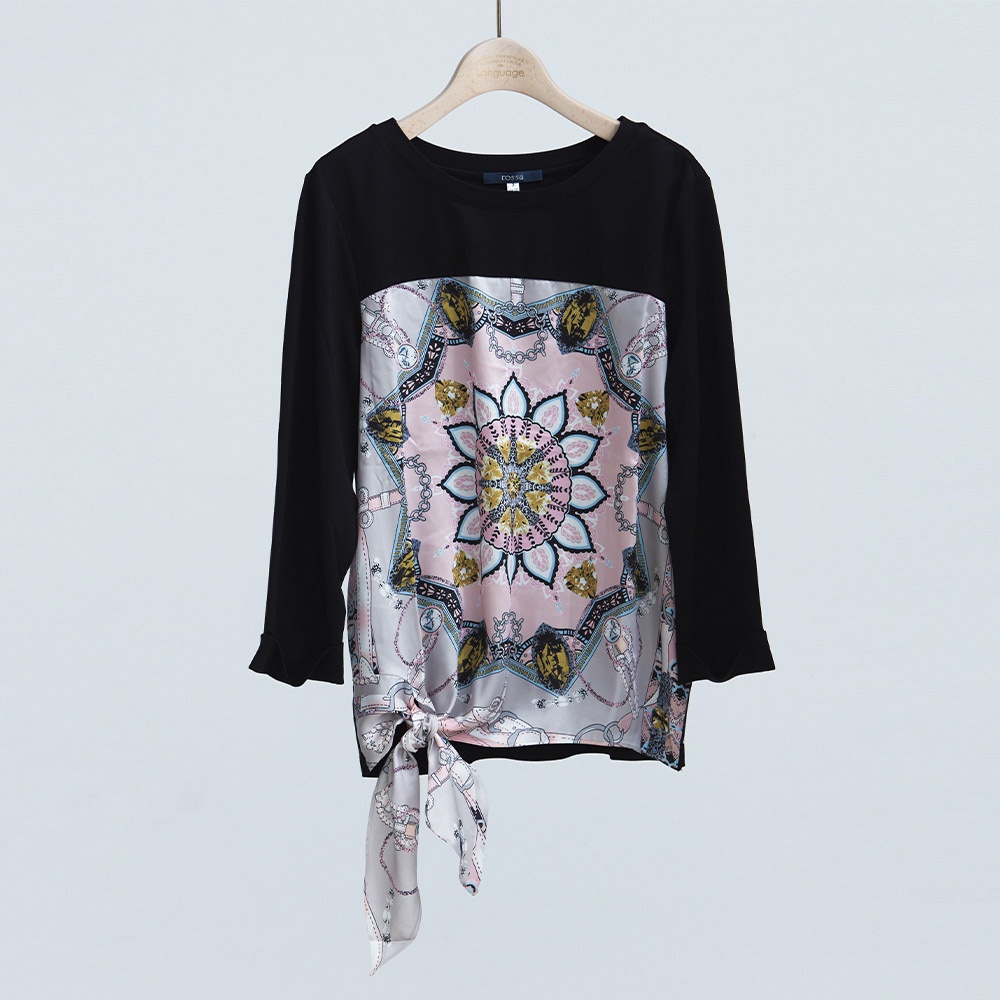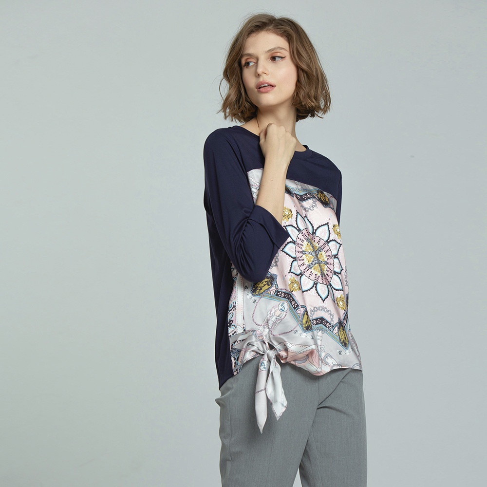 【AZUR】ROSSA時尚波西米亞風圖騰綁結上衣-2色