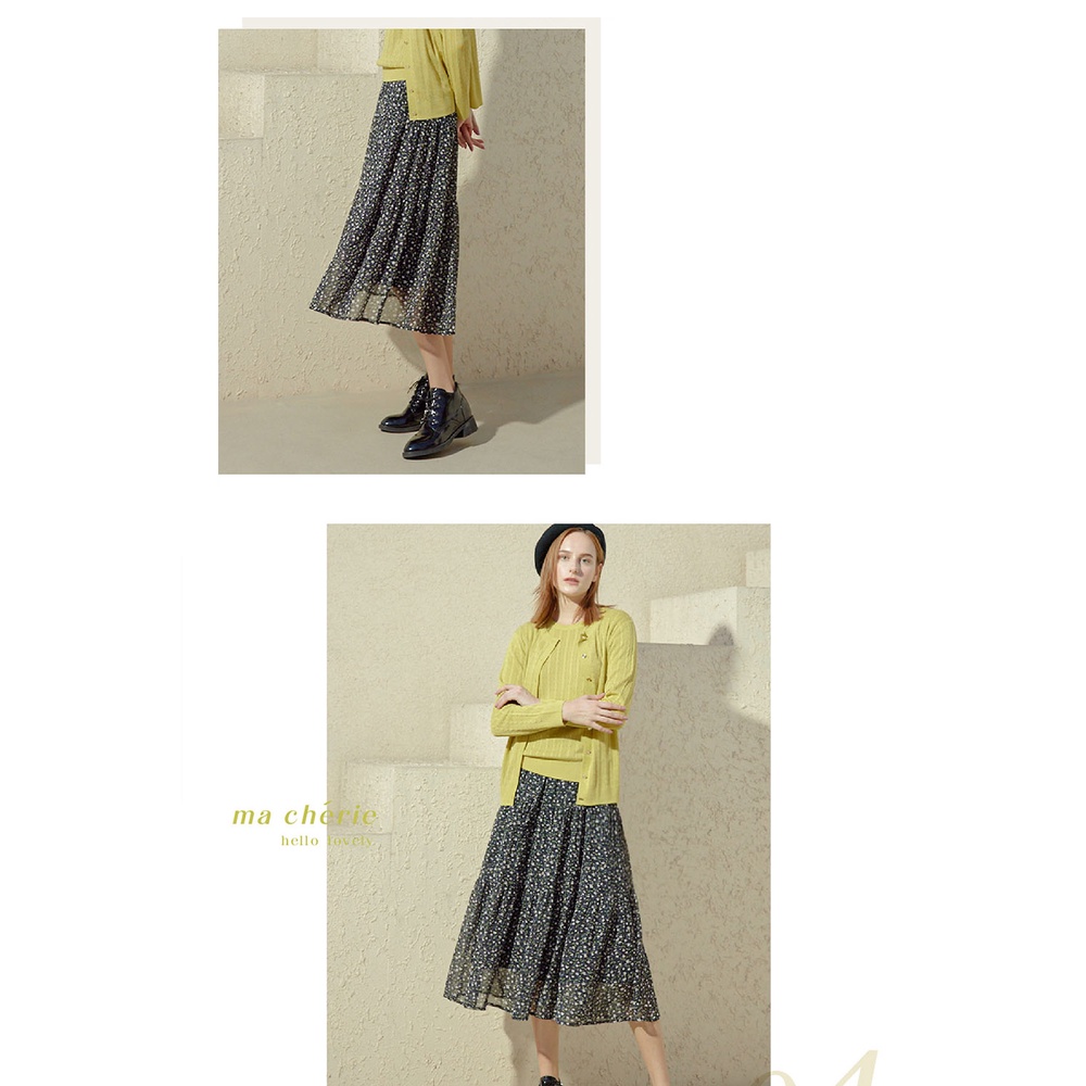 【AZUR】ROSSA 浪漫碎花紋壓褶鬆緊長裙